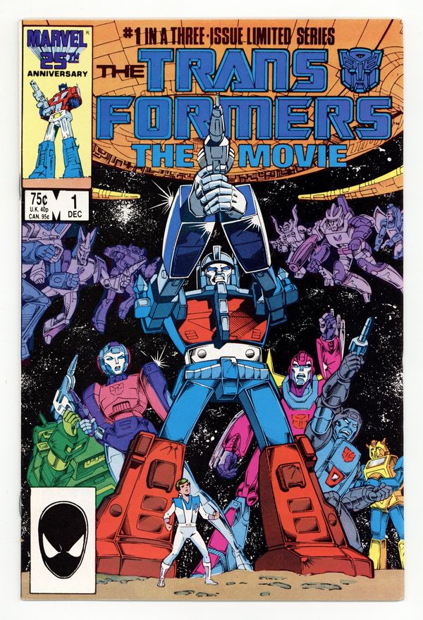 Tags: Transformers$21.00Direct Edition. "The Planet Eater!" Part 1 of 3. Adapted by Ralph Macchio. Art by Don Perlin, Ian Akin, and Brian Garvey. It is the near future and the millennium old war between the Autobots and the Decepticons comes to a head in an epic battle that leaves many familiar faces dead. New heroes, Ultra Magnus, Hot Rod, a small group of rebels, must do everything in their power to keep the Matrix from falling into the hands of the enemy. Plus, looming in the distance is the ever approaching planet consuming power known as Unicron. 32 pages. Cover price $0.75.