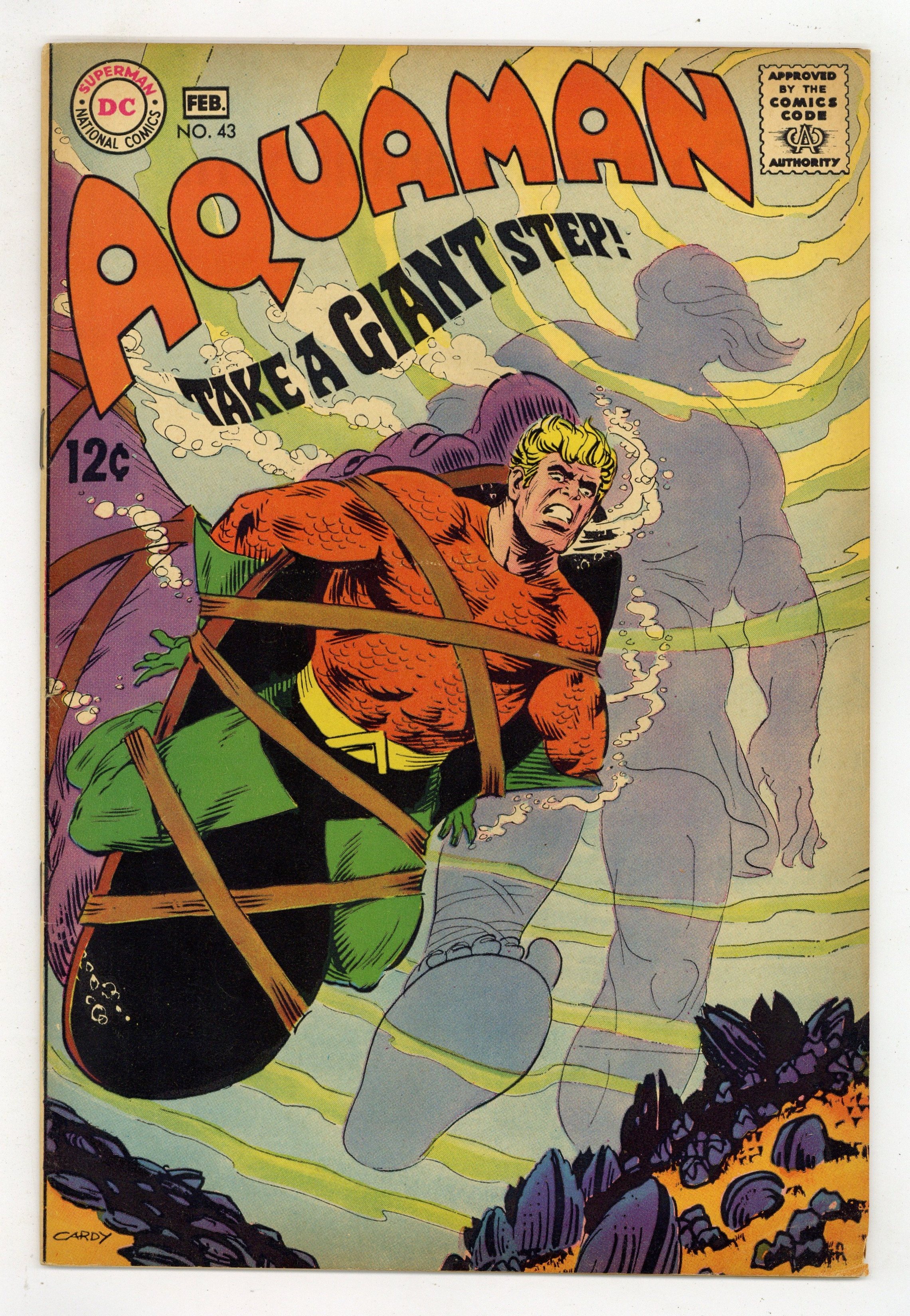 Cover art by Nick Cardy. To Win Is to Lose!, script by Steve Skeates, art by Jim Aparo; Vulkor restores water-breathing ability to the people of Atlantis; Aqualad discovers that an ailing Aqualad has disappeared; Aquaman runs across a city populated by giants; Aqualad must engage in an arena battle with the Eldfur champion. 36 pgs. $0.12. Cover price $0.12.