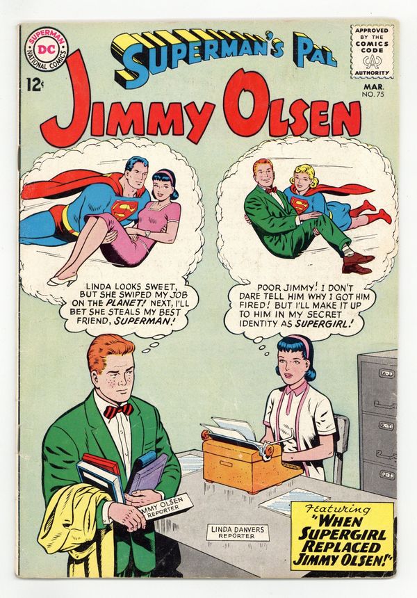 Cover pencils by Curt Swan, inks by George Klein. The Mystery of Convict 313!, script by Leo Dorfman, art by John Forte; Jimmy discovers evidence that suggests that his Father is really a jailbird. Ollie humor page by Henry Boltinoff. The Voyage of the Mary Celeste II!, script by Jerry Siegel, pencils by Curt Swan, inks by George Klein; Jimmy skippers the ship, "Marie Celeste II", and attempts to solve a ninety years old mystery. When Supergirl Replaced Jimmy Olsen!, script by Jerry Siegel, pencils by Curt Swan, inks by George Klein. 36 Pages, Full Color. Cover price $0.12.