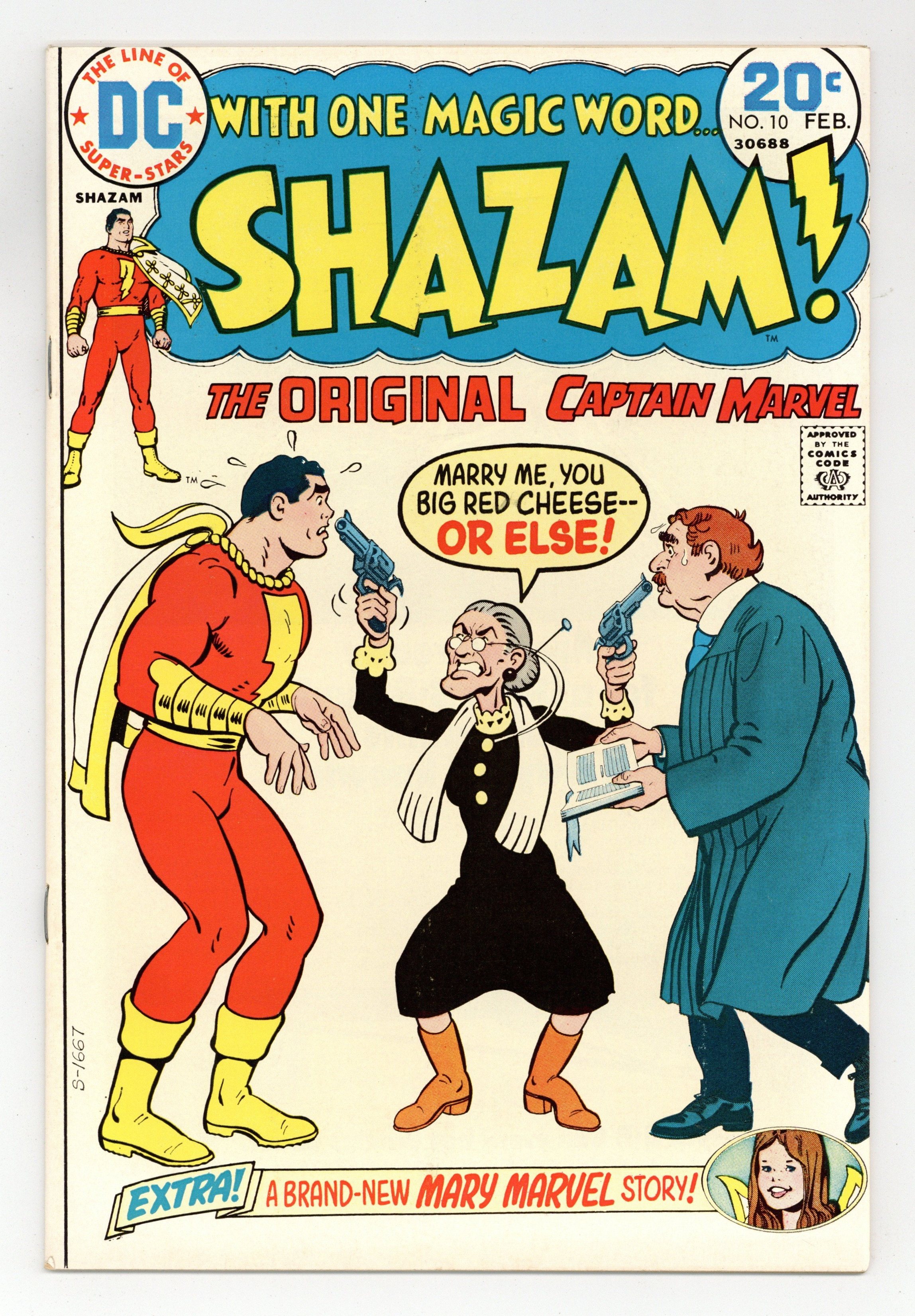Cover by Bob Oksner. Invasion of the Salad Men!, script by Elliot S! Maggin, art by Bob Oksner and Vince Colletta; A spaceship full of alien vegetables crashes on Earth; The vegetables need parts to repair their ship and Captain Marvel assists them. The Thanksgiving Thieves!, script by E. Nelson Bridwell, art by Bob Oksner; Mary Marvel is the Grand Marshall of the Thanksgiving Day parade; While in the parade she stops some burglars from stealing fur coats. The Prize Catch of the Year, script by E. Nelson Bridwell, art by C. C. Beck; Aunt Minerva asks her henchmen to defeat Captain Marvel; The winner will get Minerva's hand in marriage. 36 pgs., full color. $0.20. Cover price $0.20.
