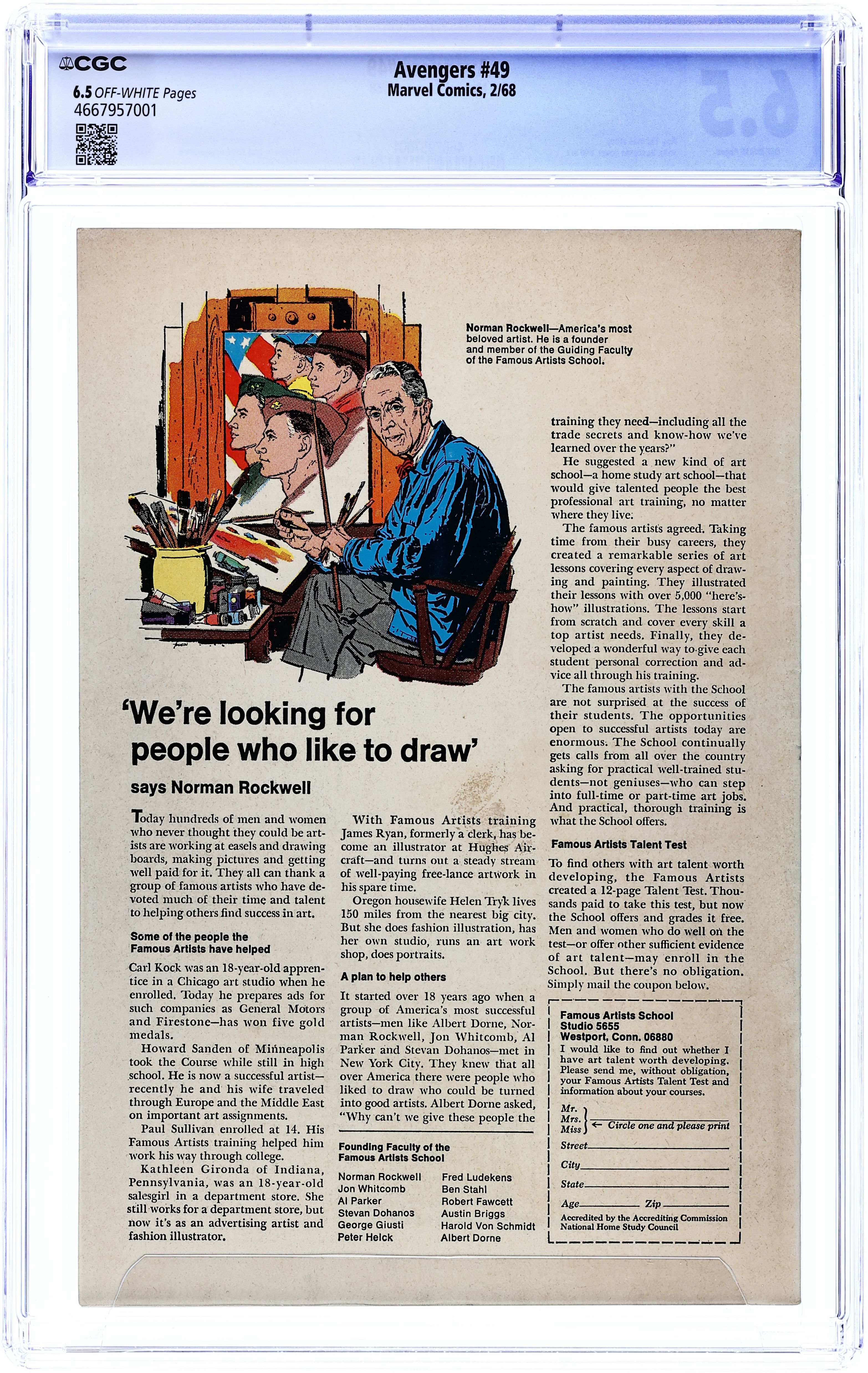 Tags: Marvel Legacy Numbering: Avengers (part 49), AvengersAvengers (1963 1st Series) 49 CGC 6.5