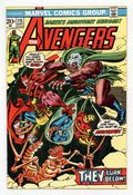 "Below Us The Battle!" Avengers-Defenders crossover. Script by Steve Englehart. Pencils by Bob Brown. Inks by Mike Esposito. Cover by John Romita and Mike Esposito. The Avengers fly to Great Britain to visit their fellow avenger, the Black Knight! But when the team approaches Garrett Castle, an invisible barrier repulses them! While Earth's Mightiest Heroes are devising a way to pierce the mystical barrier, a group of troglodytes attack! Where did these grotesque creatures come from? Surprisingly, the cave-dwellers get the best of the Avengers and throw them into a deep underground pit! Surrounded by complete darkness and with the troglodytes moving in for the kill, Earth's Mightiest Heroes turn to the Black Panther to save the day! Can T'Challa single-handedly lead the charge to victory? Flashback cameos by Magneto and Doctor Strange. Second story: "Alliance Most Foul!" Avengers-Defenders Clash Part 1 of 8. At the conclusion of Thor 207, a blind Loki fell off a high cliff and seemed headed toward certain death below! But unbeknownst to anyone, the god of lies and mischief was rescued by none other than the Dread Dormammu! Why would Dormammu do that and for what sinister purpose? If Loki and Dormammu were to join forces, who on Earth could stop them? Story continues in the second story of Defenders 8. Avengers Lineup: Black Panther, Captain America, Mantis, Iron Man, Scarlet Witch, Swordsman, Thor, and the Vision. (Notes: The Black Knight most recently fought alongside Earth's Mightiest Heroes in Avengers 100. Dormammu previously appeared in Marvel Feature (1st series) 2. The letters page includes letters from comics artists Richard Howell and Dusty Vohland respectively.) 36 pages Cover price $0.20.