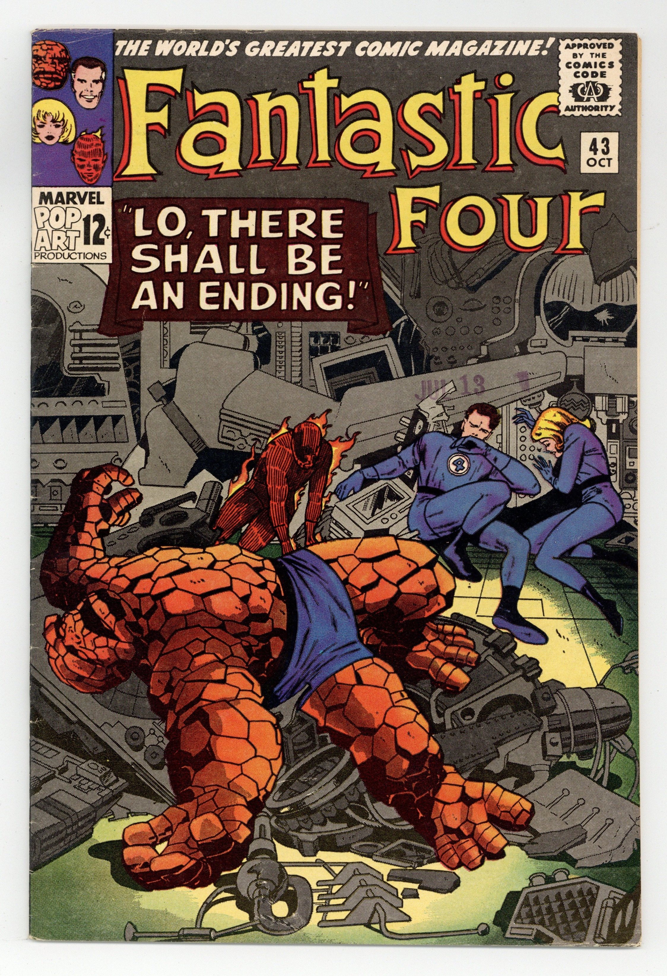 Tags: Fantastic Four$22.00Cover pencils by Jack Kirby, inks by Vince Colletta. Lo! There Shall Be An Ending!, script by Stan Lee, pencils by Jack Kirby, inks by Vince Colletta; Reed manages to free Ben and Johnny from the Frightful Four's brainwashing and he and Sue defeat the villains. Doctor Doom appearance. Story continues in Fantastic Four Annual #3. 36 pgs. $0.12. Cover price $0.12.