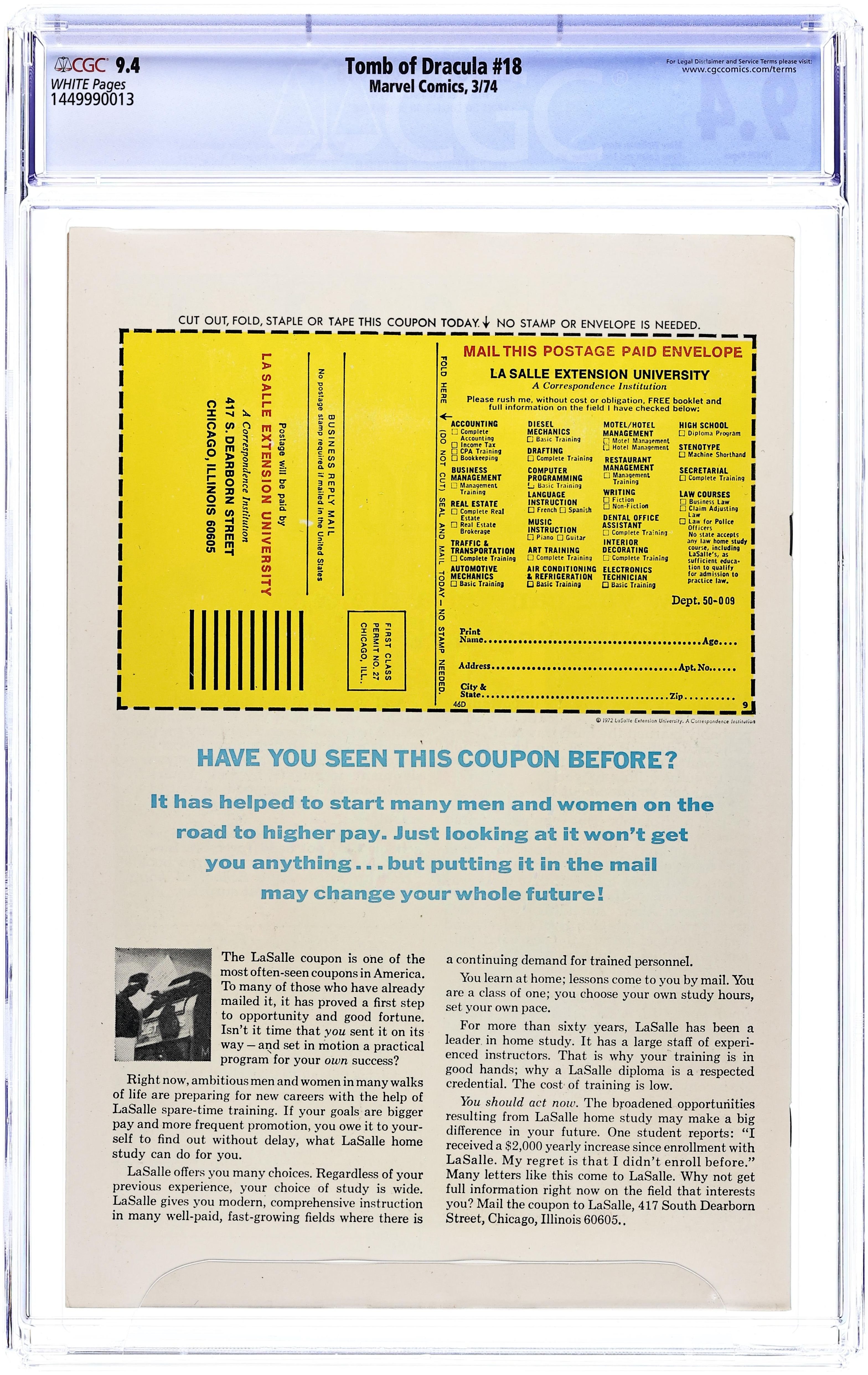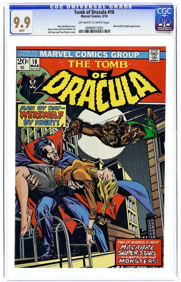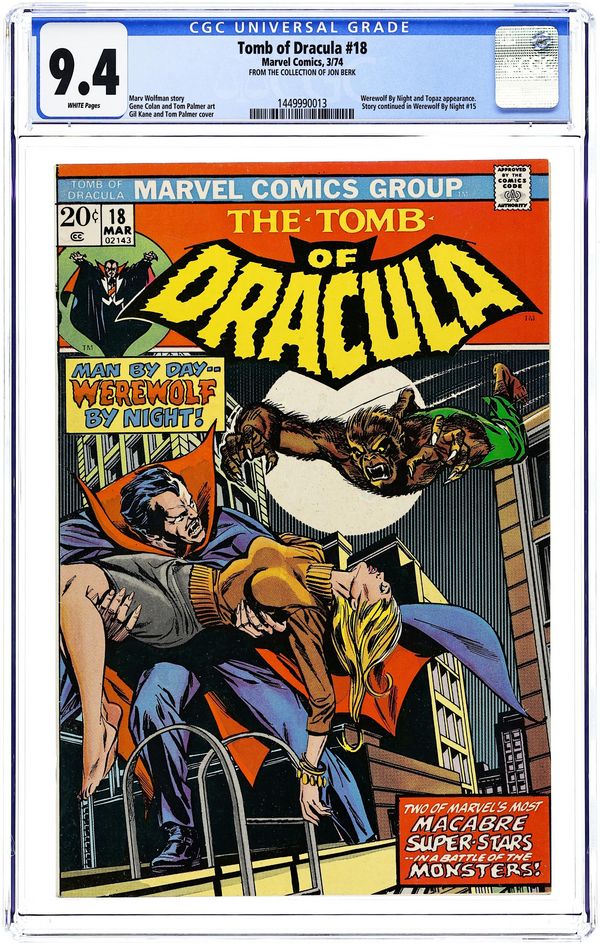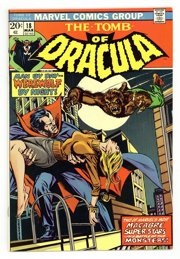 Tomb of Dracula/Werewolf by Night Crossover: Part 1 of 2 - "Enter: Werewolf by Night!" Guest-starring Jack Russel (Werewolf by Night). Written by Marv Wolfman. Art by Gene Colan and Tom Palmer. Cover by Gil Kane. It's the battle for the night as the power of Dracula is pitted against the savage might of the werewolf! Blade cameo. Story continues in Werewolf by Night (1972-1977 1st Series) #15. 32 pages, FC. NOTE: The letters page contains Marvel Value Stamp series A #7 (Werewolf by Night). Cover price $0.20.