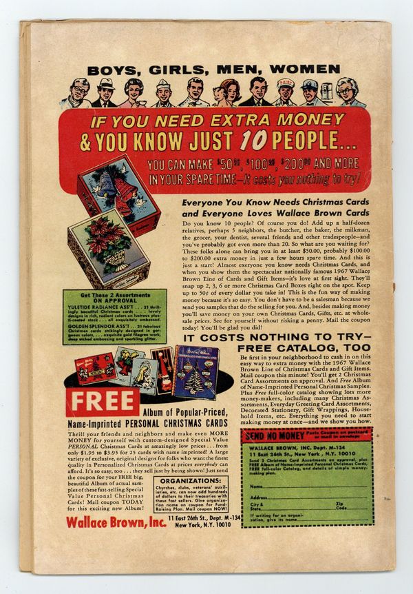 Ends Apr 15 8:46 PM CST Bid History 20 bids Current Bid $215 Your Secret Max Bid If you'd like to bid, please log in or register. Cover art by Dan Adkins. Along Came a Spider..., script by Roy Thomas, pencils by Werner Roth, inks by Dan Adkins; Banshee calls to the X-Men for help against a mysterious spider creature, and when the young mutants run across Spider-Man, they mistake him for their foe and a battle ensues. House ad for issue #2 of Not Brand Echh. Letter from future comics professional Mark Evanier, whose entry is in the form of a poem. Ad for The Merry Marvel Marching Society. 36 pgs. $0.12. Cover price $0.12.