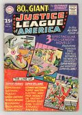 $28.00Cover pencils by Mike Sekowsky, inks by Murphy Anderson and Bernard Sachs. Reprints. Starro the Conqueror, script by Gardner Fox, pencils by Mike Sekowsky, inks by Bernard Sachs. Starro vs. Green Lantern, script by Gardner Fox, pencils by Mike Sekowsky, inks by Joe Giella. Starro vs. Wonder Woman and John Jones, Manhunter from Mars, script by Gardner Fox, pencils by Mike Sekowsky, inks by Bernard Sachs. Starro vs. the Flash!, script by Gardner Fox, pencils by Mike Sekowsky, inks by Murphy Anderson. Starro vs. Justice League of America, script by Gardner Fox, pencils by Mike Sekowsky, inks by Bernard Sachs. Case of the Stolen Super-Powers!, script by Gardner Fox, pencils by Mike Sekowsky, inks by Bernard Sachs. When Gravity Went Wild!, script by Gardner Fox, pencils by Mike Sekowsky, inks by Bernard Sachs. Half-page index of the first 39 issues. Rocky and Bullwinkle star in a one-page Cheerios ad. 84 pgs. $0.25. Cover price $0.25.