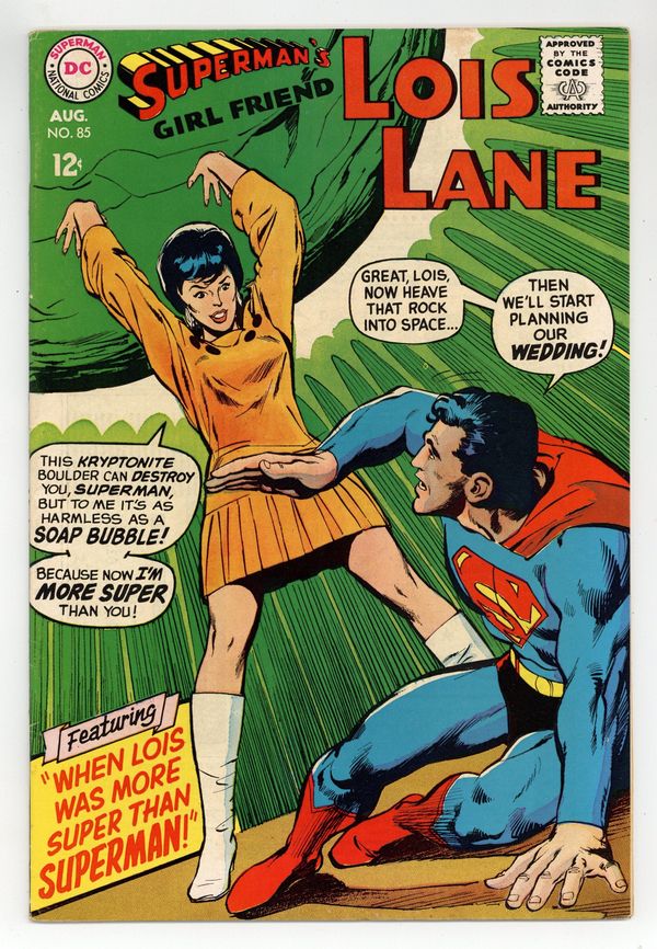 Cover art by Neal Adams. When Lois Was More Super Than Superman!, script by Leo Dorfman, pencils by Irv Novick, inks by Mike Esposito; Lois is invited to visit Kandor with three other accomplished women of Earth; While there, a shady scientist gives her super-powers for an unknown reason. House ad for Superman's Pal, Jimmy Olsen #113. Part II - Slave of the Super-Serum!; Lois uses her new super-powers to save Superman from a Kryptonite trap set by Mayhem, Inc. Lois Lane's Childhood!, script by Jerry Siegel, art by Kurt Schaffenberger; Lois and Kal-El's childhoods are paralleled on different worlds, amazingly the future Superman is still able to save Lois's life. 36 Pages, Full Color. Cover price $0.12.