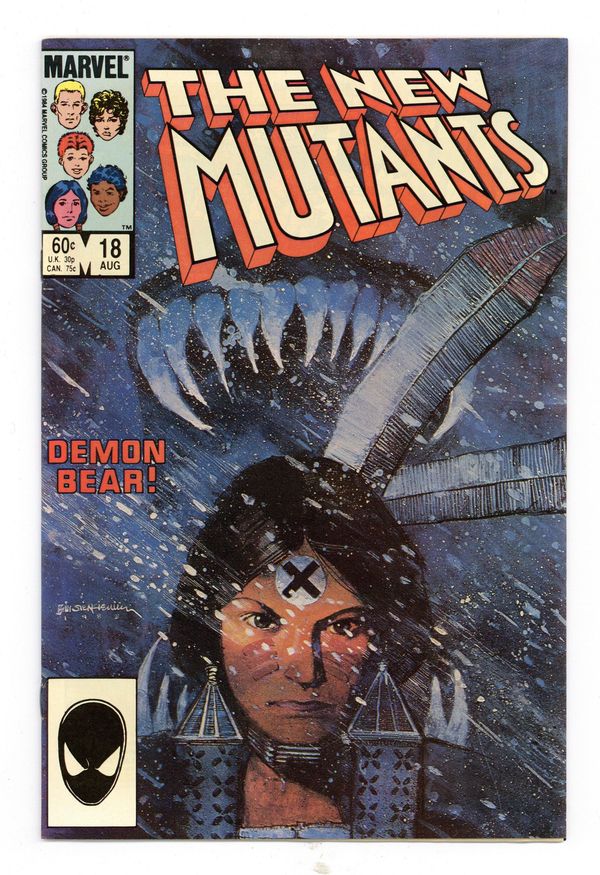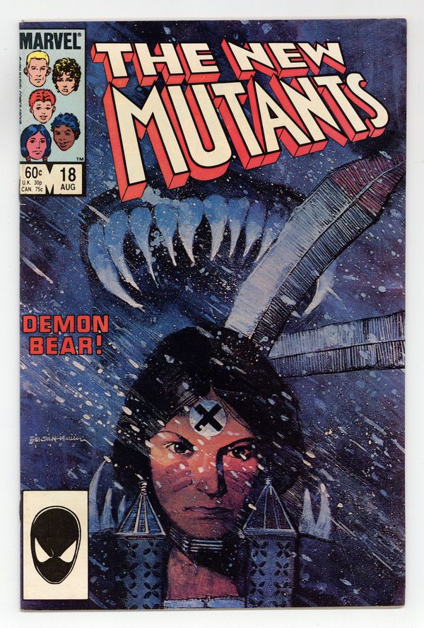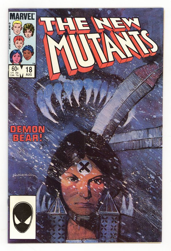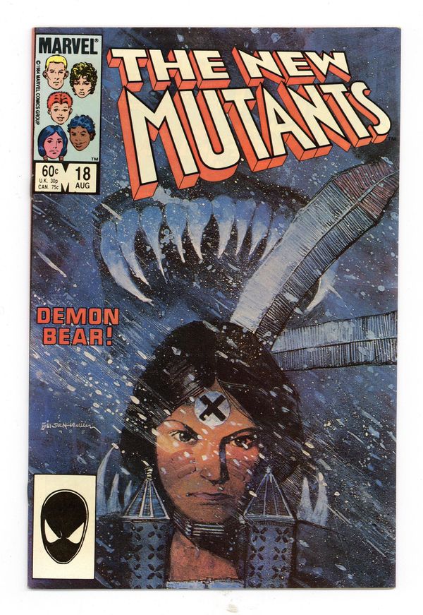 Starts Dec 8 Direct Edition. Cover art by Bill Sienkiewicz. 1st appearance of Warlock in Death-Hunt, script by Chris Claremont, art by Bill Sienkiewicz (begins as regular artist); Danielle Moonstar knows that the Demon Bear that killed her parents is coming for her; Rachel Summers, displaced from her own time, tries to contact Professor X; Warlock tries to flee from Magus, his father; the Demon Bear comes for Danielle Moonstar and critically wounds her. 36 pgs. $0.60. Cover price $0.60.