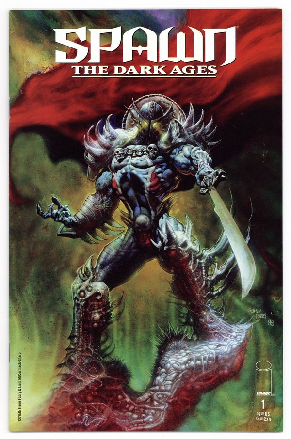 Cover by Glenn Fabry and Liam McCormack-Sharp. The Devil's Knight, script by Brian Holguin, art by Liam McCormack-Sharp; A Hellspawn comes to the English village of Rhyll, looking to find a hint of who he is and what he has become; What he finds instead is gross injustice and a people oppressed by Baron Rivalen; He intervenes in a clash between a common peasant and Rivalin's captain-at-arms, Guy DuBlanc, and slices up the vain man's face; He then approaches a crumbling castle that seems familiar where he is greeted by a garrulous stranger. 36 pgs., full color. $2.50. Cover price $2.50.