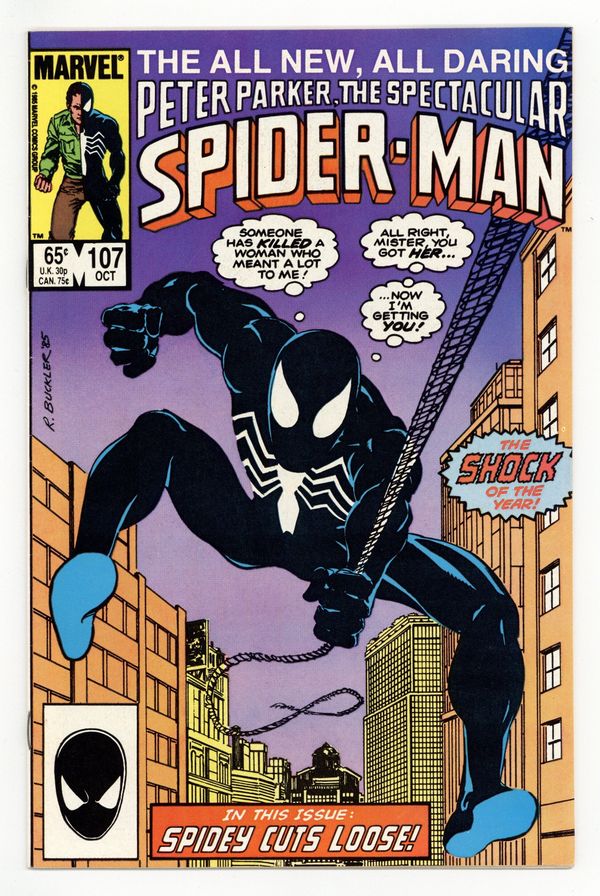 Direct Edition. "Original Sin" Part 1 of 4. Guest-starring Daredevil. Script by Peter David. Pencils by Rich Buckler. Inks by Brett Breeding. Cover by Rich Buckler. The critically acclaimed Death of Jean DeWolff storyline begins with this issue. In a stunning development, police captain Jean DeWolff is found murdered in her apartment. The entire city is in a state of shock over the killing including the police department, the staff at the Daily Bugle, and the Amazing Spider-Man. The web-slinger (in his black costume) begins investigating the homicide by meeting with the detective assigned to the case, Stan Carter. However, another superhero, Daredevil, gets the first shot at stopping the murderous rampage of the Sin-Eater! First appearance of the Sin-Eater. 32 pages Cover price $0.65.