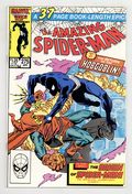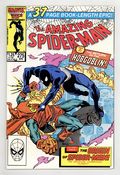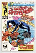 Direct Edition. "The Choice and the Challenge!" Part 1 of 2. Double-sized issue. Script by Tom DeFalco. Pencils by Ron Frenz. Inks by Joe Rubinstein. Cover by Ron Frenz and Joe Rubinstein. Affairs of the heart take center stage for Peter, Mary Jane, Betty, Ned, Flash, and Sha Shan as the long-time group of friends deal with a variety of relationship problems! But amid the soap opera-style drama, there is a super-villain on the prowl...the Hobgoblin! Armed with a new weapons system, the goblin circles the Port Authority Bus Terminal to draw out the web-slinger! Surprisingly the Hobgoblin's plan works! And then so does his new weapon! Is the goblin finally going to put Spidey down for the count? Cameo appearances by the Kingpin, Arranger, and Rose. Flashback cameos by the Green Goblin, Gwen Stacy, and the Sin-Eater. (Notes: Woven into the story are 11 (reprinted) pages of Spider-Man's origin from Amazing Fantasy 15. Script by Stan Lee. Art by Steve Ditko. On the cover the web-slinger and Hobgoblin break through a page from Amazing Fantasy 15. This issue was reprinted in Marvel Tales 283.)52 pgs. Cover price $1.25.