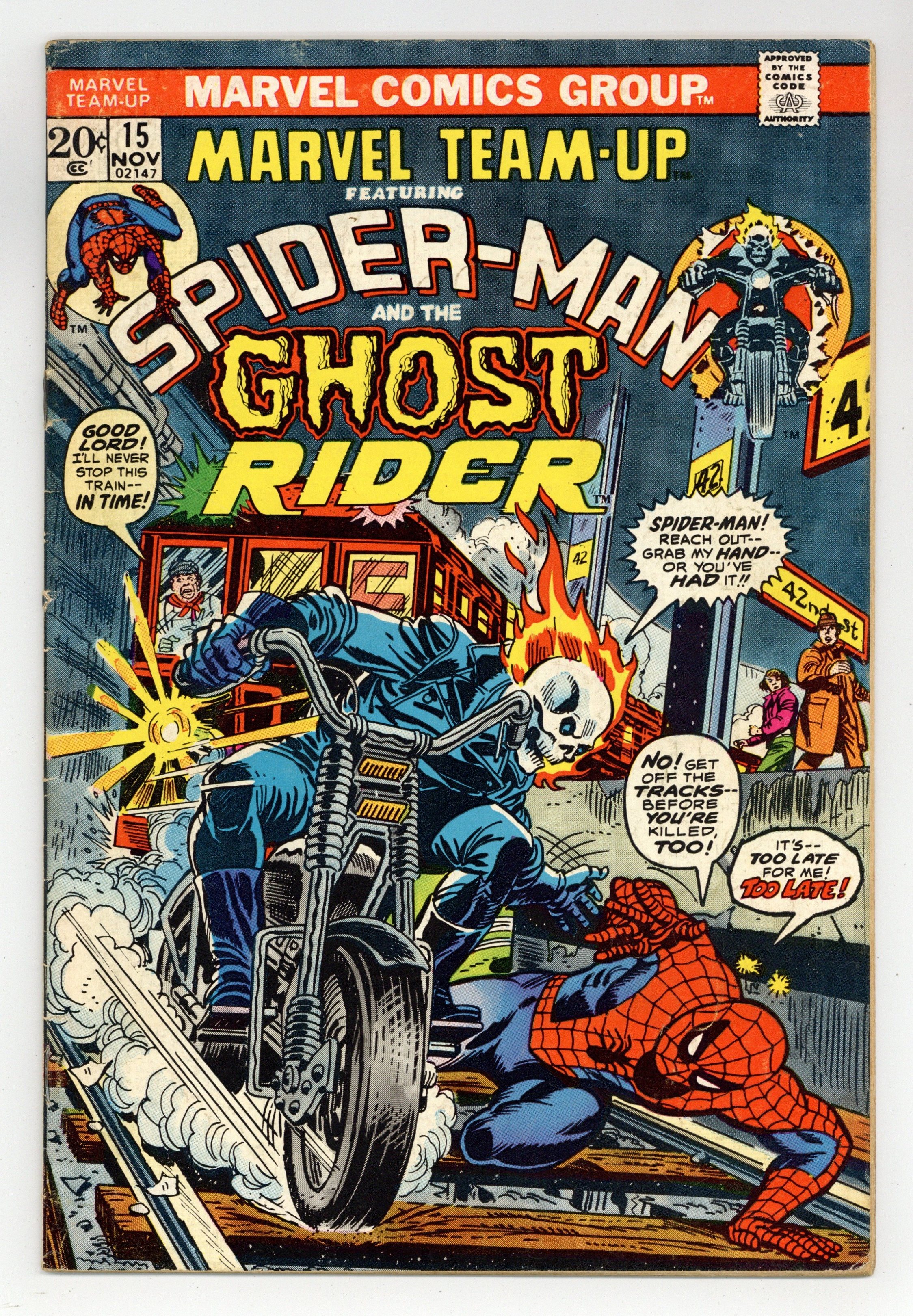 Spider-Man and Ghost Rider in "If An Eye Offend Thee." Script by Len Wein. Pencils by Ross Andru. Inks by Don Perlin. Cover by Gil Kane, Frank Giacoia, and John Romita. Spider-Man and Ghost Rider battle the Orb. First meeting between Spider-Man and Ghost Rider. Origin and first appearance of the Orb. The Orb appears next in Ghost Rider (1st series) 14. This issue was first reprinted in Marvel Treasury Edition 18 and Marvel Tales 254. 36 pages. Cover price $0.20.