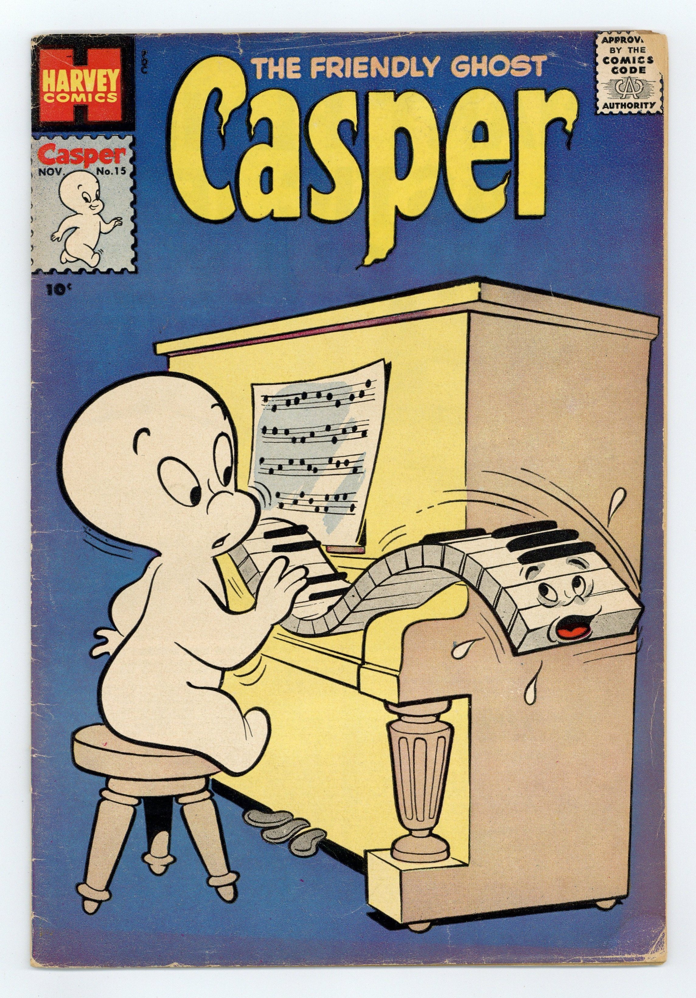 Cover by Warren Kremer. Harvey presents the adventures of Casper in the long-running series sometimes called The Friendly Ghost Casper. Casper accidentally scares a tree out of his garden's sunlight path. Casper tries to help when a vengeful Witch Weevil curses Wendy's furniture and makes it come to life and run away, in a three-part story. Spooky pretends to be an undercover ghost-chaser to get the run of a haunted castle. Casper the Friendly Ghost; The Witching Hour; To the Rescue; Home Sweet Home; Spooky: The Haunted Castle. 36 pages, full color. Cover price $0.10.