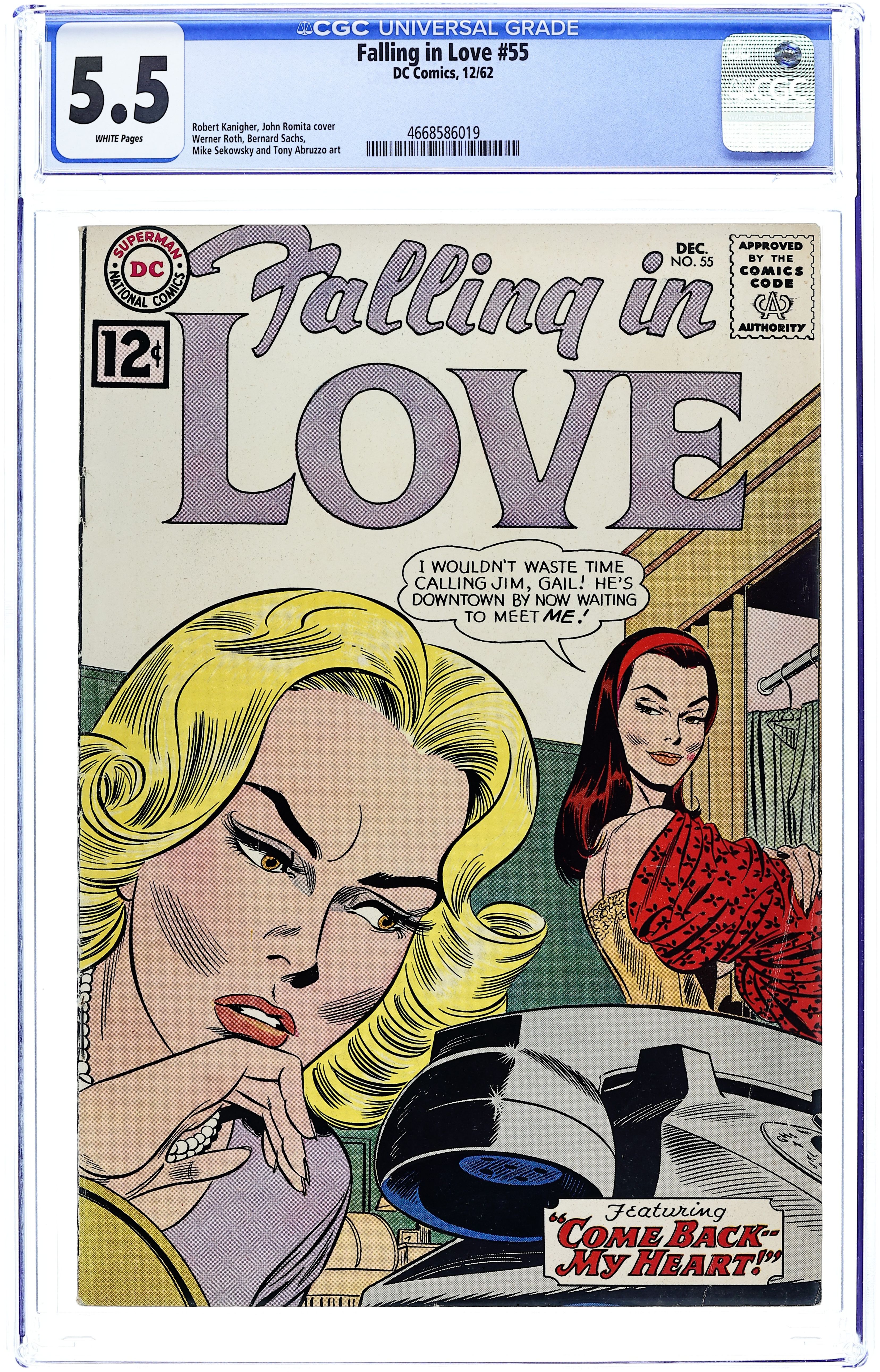 Featuring: 8 page story "If Love Had Its Way" drawn by Bernard Sachs; 7 page story "A Day for Tears" pencilled by Mike Sekowsky; 7 page story "My Only Love"; 2 page To You...From Carol Andrews letters page; 8 page story "Come Back--My Heart" written by Robert Kanigher and drawn by Werner Roth & John Romita, Sr. Cover pencils by John Romita, Sr. Cover price $0.12.