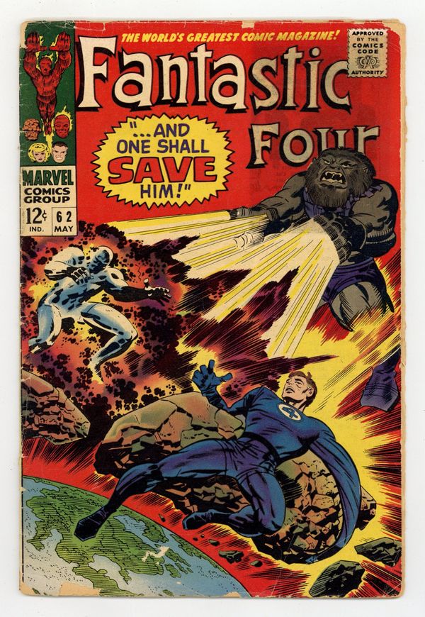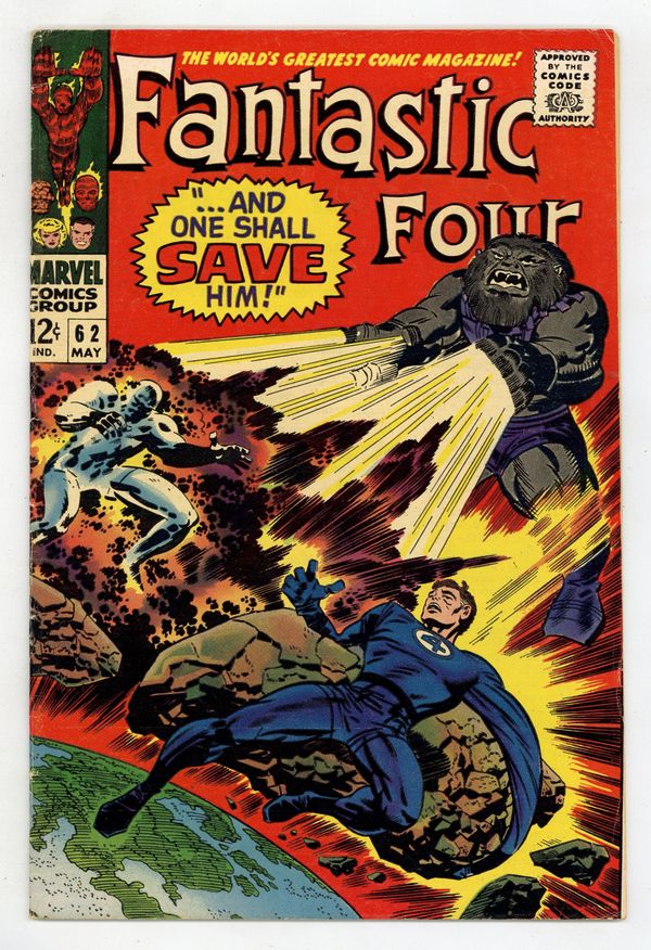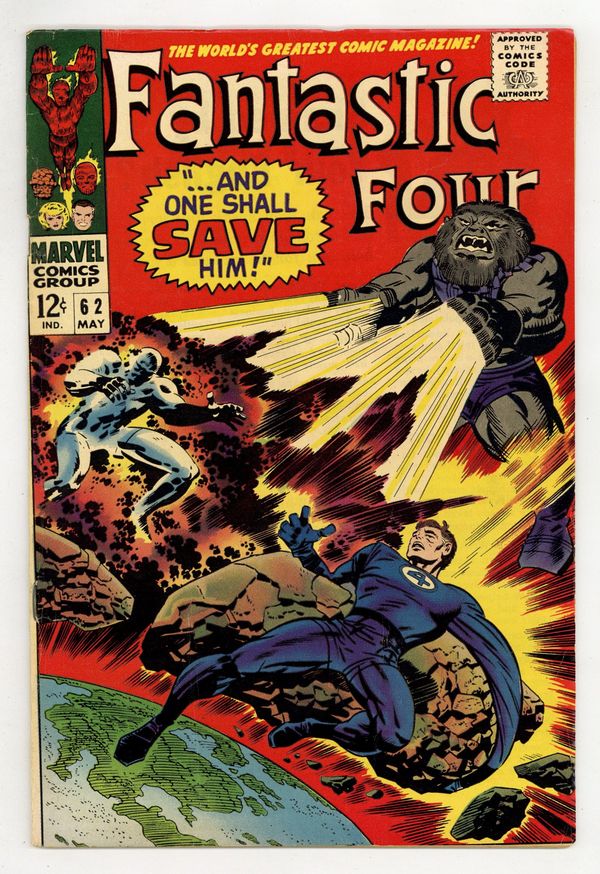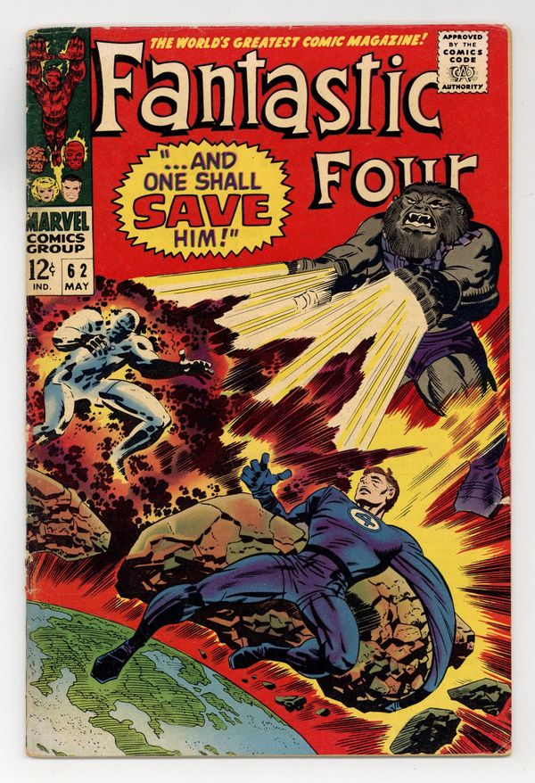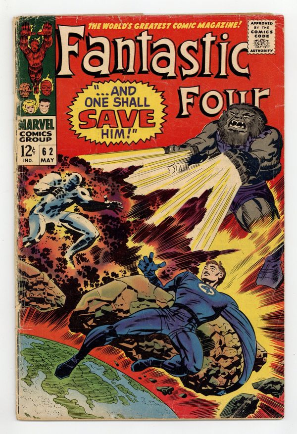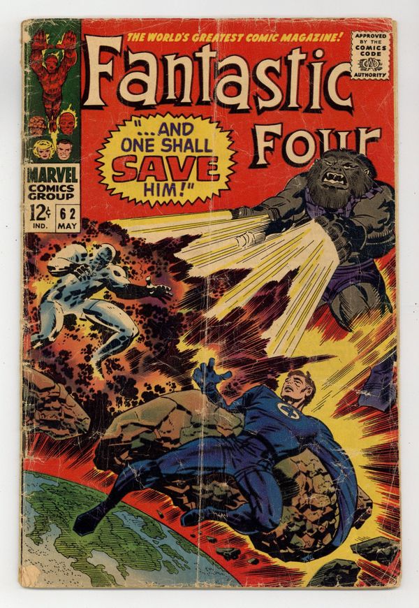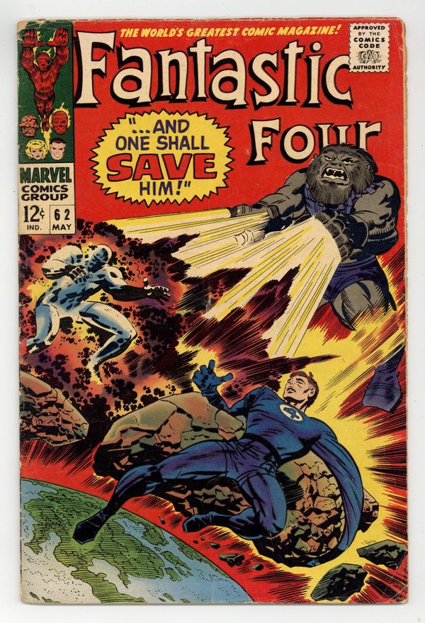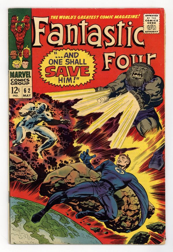 Tags: Fantastic Four$31.00Cover pencils by Jack Kirby, inks by Frank Giacoia. ...and One Shall Save Him!, script by Stan Lee and Jack Kirby (co-plot), pencils by Jack Kirby, inks by Joe Sinnott; While trapped in the Negative Zone, Reed battles Blastaar. Sandman appearance; first appearance of Blastaar. Reprinted in Marvel's Greatest Comics # 45. 36 pgs. $0.12. Cover price $0.12.