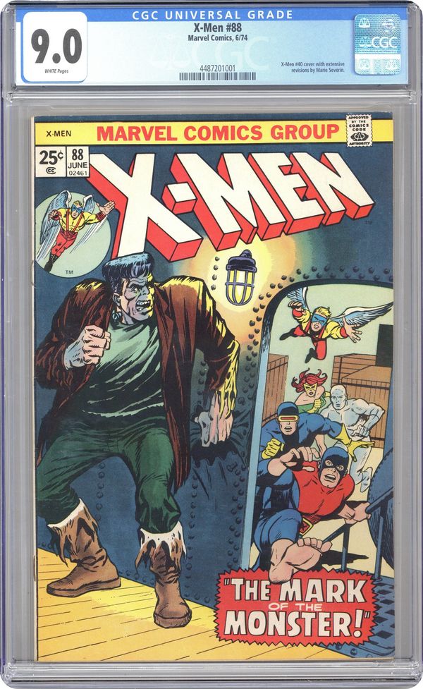 Cover art by George Tuska and Marie Severin (alterations). The Mark of the Monster, script by Roy Thomas, pencils by Don Heck, inks by George Tuska; the X-Men battle the Frankenstein monster, who is revealed SPOILER WARNING to be an android; reprinted from issue 40. Thru the Lens, art by Joe Maneely. 36 pgs. $0.25. Cover price $0.25.
