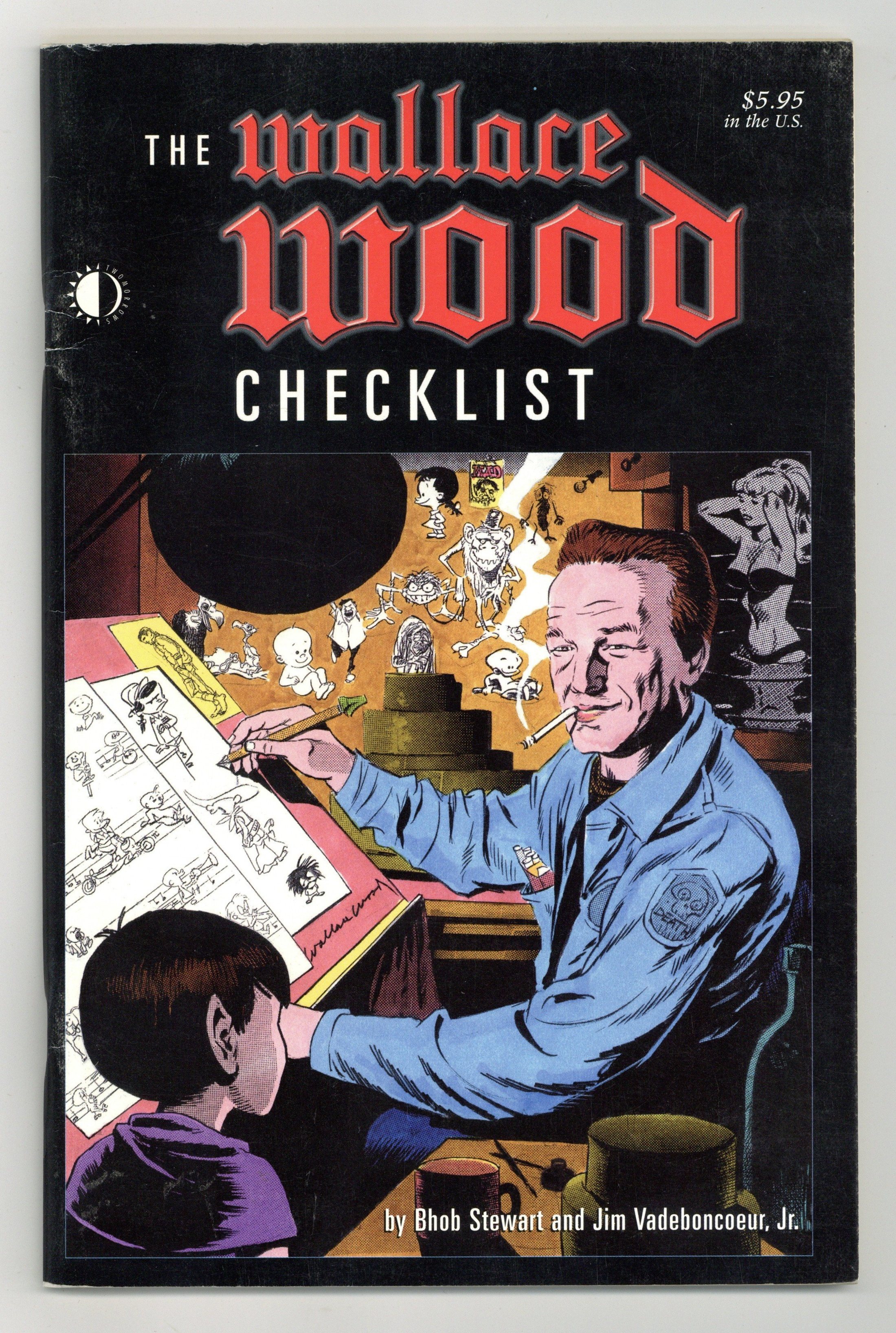 Published Nov 2003 by TwoMorrows.$36.00Released in conjunction with Against the Grain, the Wallace Wood Checklist is the most thorough listing of Wood's work ever published! This fully updated, definitive edition took more than 20 Wood experts over two decades to compile, and lists in exacting detail Woody's published comic work, including dates, story titles, page counts, and even documents the assistants who worked with him! It also includes his newspaper, advertising, and fanzine work, plus a myriad of more obscure Wood pieces such as gum cards, stickers, greeting cards, and more! Also included are listings of his unpublished work, direct from Bill Pearson, executor of Wood's estate, who has access to Wood's own files. Plus, it's profusely illustrated throughout with glorious Wood artwork! It's a must-have item for the serious collector of Wood work! (TwoMorrows Publishing) (CAUT: 4) Magazine, 7x10, 68pg, b&w $5.95 Cover price $5.95.