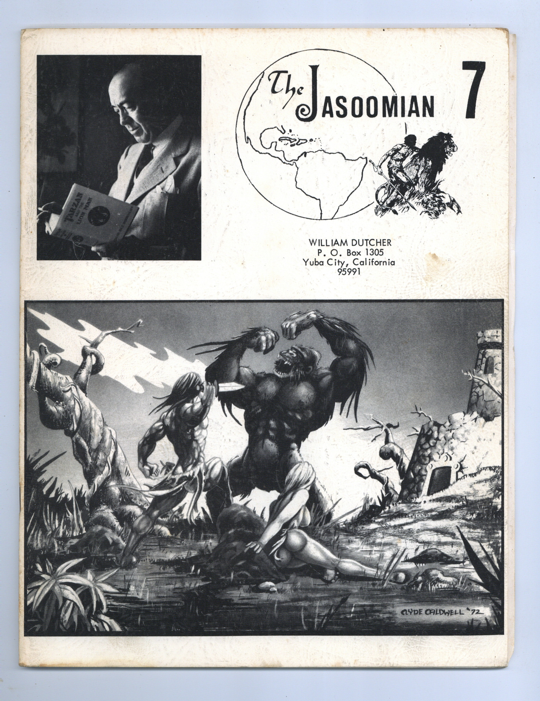 Issue #7 - Jan. 1972. Fanzine devoted to celebrating the works of Edgar Rice Burroughs. Cover by Clyde Caldwell, back cover by Steve Fabian. "Friendly Puppeteers Present Tarzan" by John Sullivan, newspaper clippings and more. 8 1/2-in. x 11-in., 28 pages, black and white.