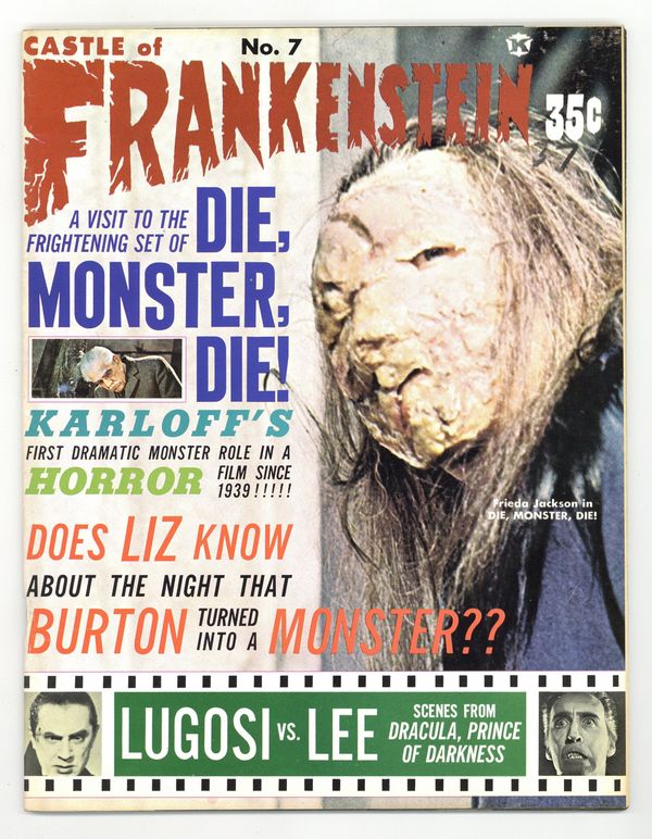 $16.00Mature readers. This issue has articles on "Max" the monster (from Hercules and the Princess of Troy), the European film scene, Tomb of Ligeia, She, and The Avengers (television series). Also includes: "A Visit to the Set of Die, Monster, Die"; "Monsters from the Museum of Modern Art"; part four of "The Lon Chaney Jr. Story"; and "The Lon Chaney Jr. Filmography." Cover depicts Frieda Jackson in Die, Monster, Die. Cover price $0.35.