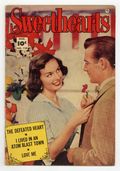 Published 1953 by Fawcett/Charlton.$32.00Stories and art by Mike Sekowsky and Daniel Sheldon. Sweethearts was the first monthly romance title. In a real curiosity, even by atomic-comics standards, Janie and Ben's relationship faces an existential crisis when an atom-bomb test outside their small town gives Janie horrifying visions of an atomic holocaust. May and Ted are engaged, but she gets mixed up in underhanded shenanigans at the carnival where she's working, and he gets dragged into her problems. Kate becomes jealous and manipulative of Magda, the beautiful exchange student who's living with her parents for a year. Plus a comics biography of screen legend Elizabeth Taylor. Big Experiment; I Lived in an Atom Blast Town!; Dream Girl of the Month: Elizabeth Taylor; The Defeated Heart; Dream Beau of the Month: Marshall Thompson; Love Me. 32 pages, Full Color. Cover price $0.10.