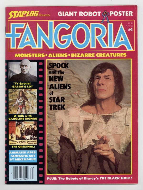 Published Feb 1980 by O'Quinn Studios.$13.50This issue includes the following: a letter from Fred Olen Ray; "The Aliens of Star Trek the Motion Picture"; an interview/article on Caroline Munro; a piece on Herschel Gordon Lewis; Dana Andrews recalls Curse of the Demon; director Don Siegel on making Invasion of the Body Snatchers; article on warrior robots (with accompanying foldout poster); on the set of TV's Salem's Lot mini-series; part one of "A History of Animated Apes"; and more. Leonard Nimoy as Spock featured on the cover. Cover price $1.95.