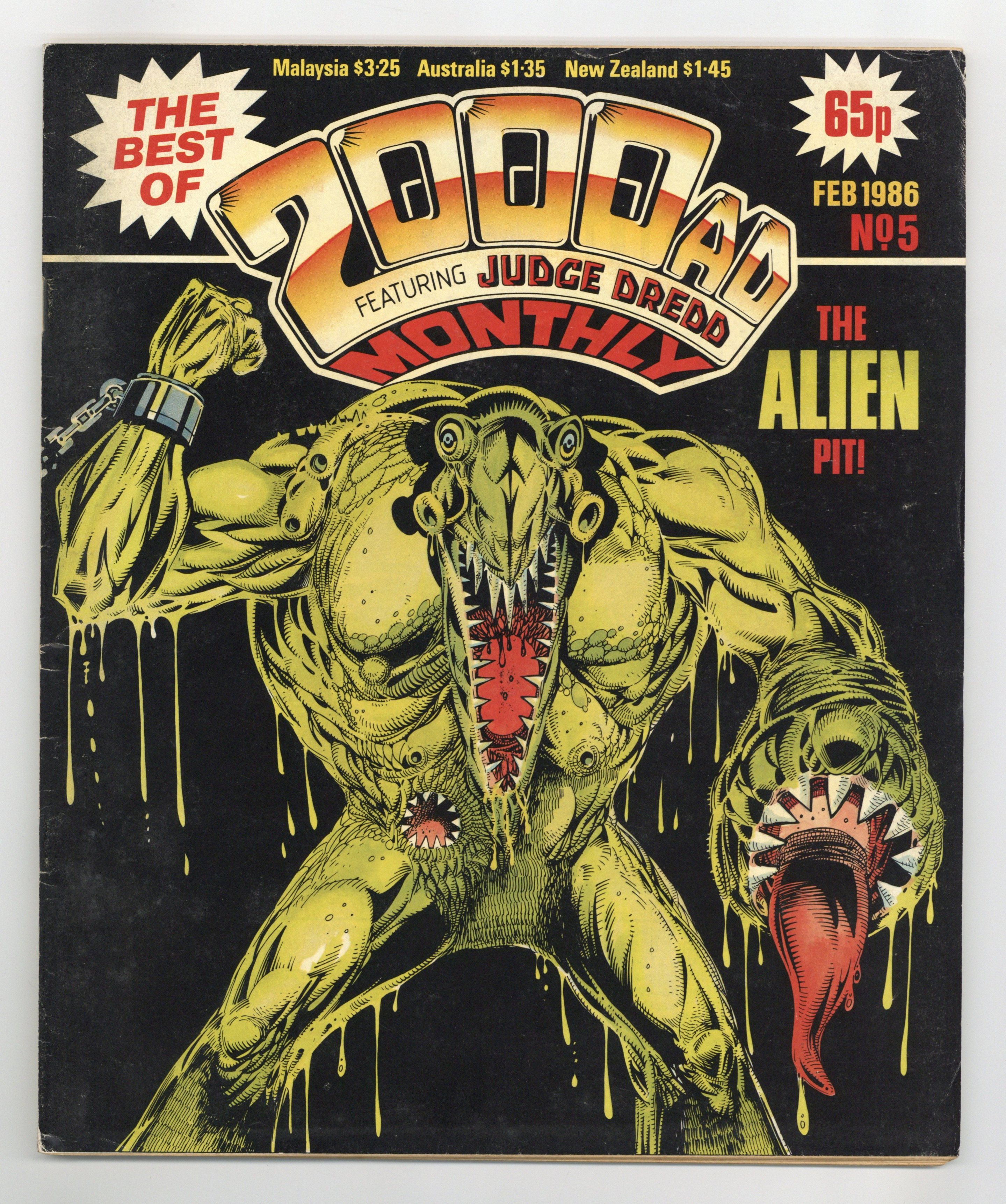 Published Feb 1986 by IPC Magazines.$3.80Featuring: Strontium Dog by Alan Grant & Carlos Ezquerra; Rogue Trooper by Gerry Finley-Day & Colin Wilson; Judge Dredd by John Wagner & Ron Smith; Ro-Jaws' Robo Tales by Alan Moore & Dave Gibbons; Time Twisters by Alan Moore & Dave Gibbons; Nemesis the Warlock by Pat Mills & Kevin O'Neill.