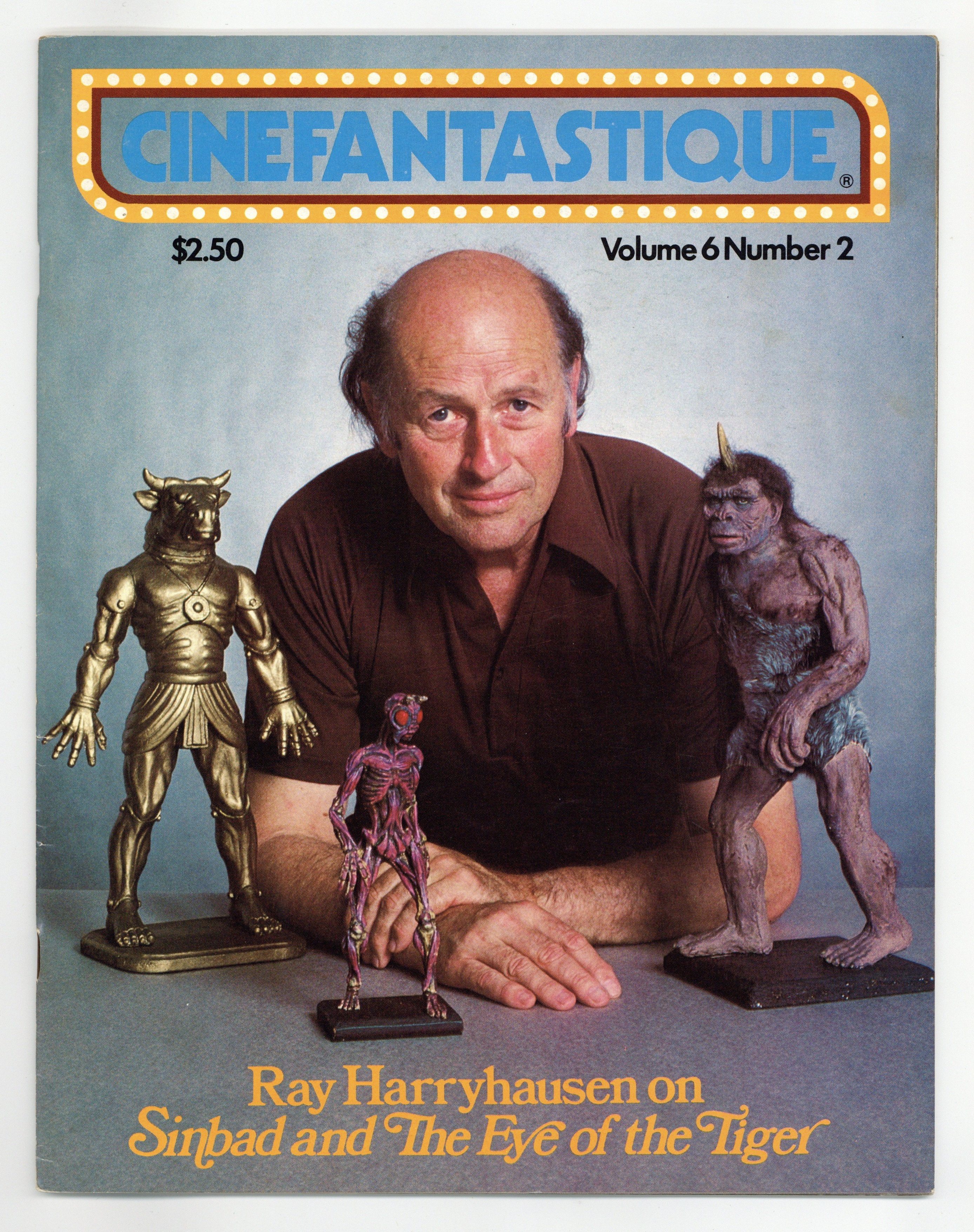This issue includes the following: an interview with Ray Harryhausen; an article on the special effects of Harryhausen; reviews of Star Wars, Sinbad and the Eye of the Tiger, and other movies; doing dimensional animation inexpensively by S. S. Wilson; and more. Cover photo of Harryhausen photographed by Peter M. Fine. Cover price $2.50.