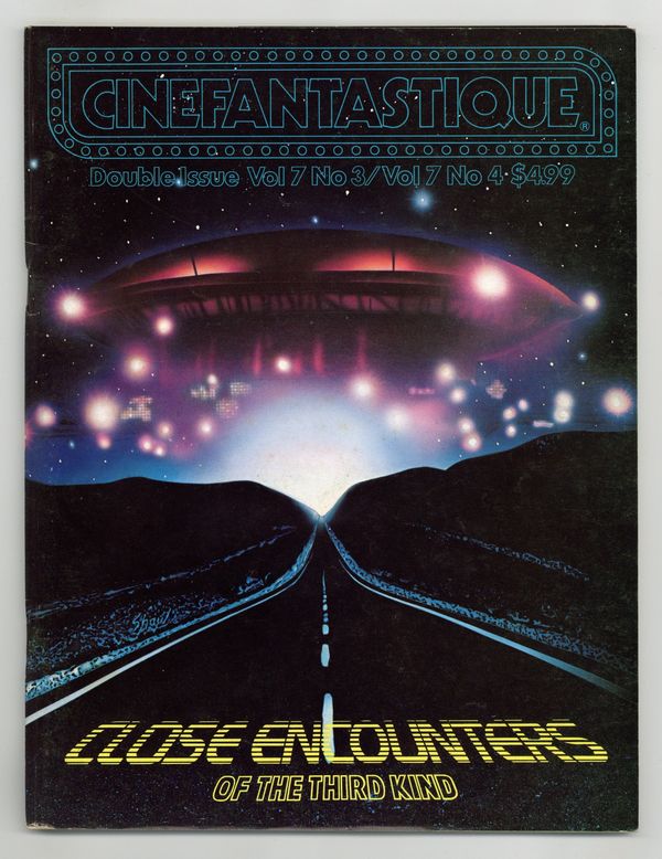 Published 1978 by Frederick S. Clarke.$18.00#24; Double issue: Double Issue: Vol 7, Num 3 AND Vol 7, Num 4. This special double issue includes the following: interviews with alien creator Carlo Rambaldi and others involved in Close Encounters of the Third Kind; Steven Spielberg on Close Encounters; reviews of Count Dracula, The Fury, and other movies; a piece on Battlestar Galactica; a feature on Conan the Barbarian; Dracula on Stage; articles about Love at First Bite and The Shining; and more. Cover painting of Close Encounters by Barclay Shaw. Cover price $4.99.