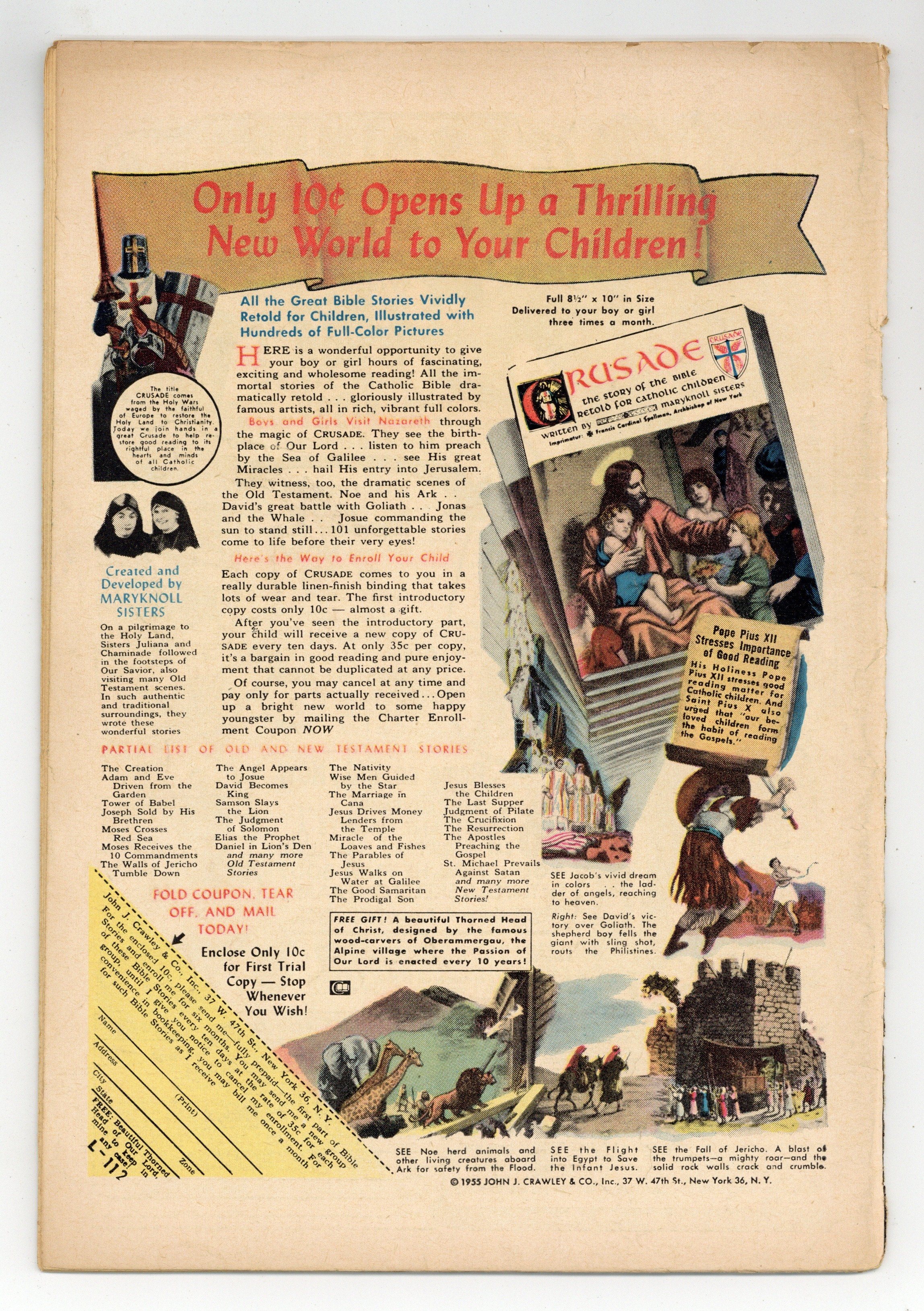Published Sep 1955 by Magazine Enterprises.$105.00- 1 1/2" Cumulative spine split. Water spots. Moisture. Cover oxidation.