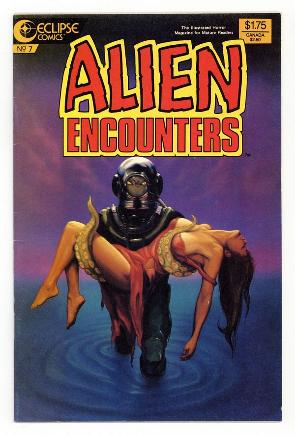$13.00The illustrated horror magazine for mature readers. War is unforgiving in "Under Tartuka." Script by Bruce Jones, art by Bo Hampton. The price of fame in "So You Want To Be in Pictures?" Story by Douglas Wheeler, art by Richard Howell. Objects take flight in "It Happened This Morning." Story & art by Rick Geary. The truth is just as strange as fiction in "Picture Me and You." Story by Bruce Jones, art by Chuck Beckum. Cover by Corey Wolfe. Cover price $1.75.