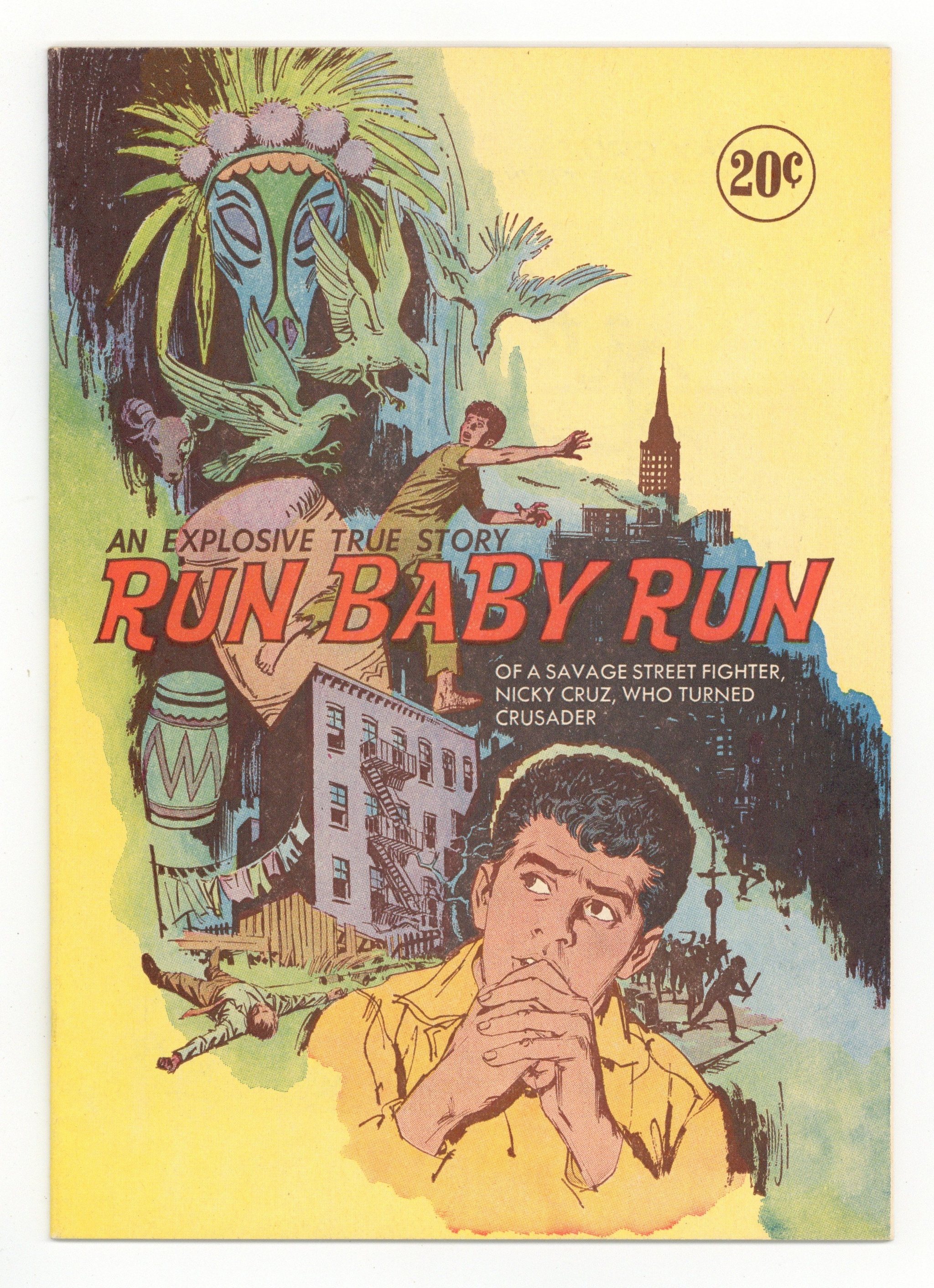 Published 1971 by Logos International.$24.00Inspirational Christian story based on the true life events of Nicky Cruz. Copyright date 1968 (Co-published by Logos International & David C. Cook Publishing Co. in 1971). 32 pages color illos and text. Special Edition of "Bible-in-Life Pix" series. 6 1/8 x 8 3/4. Newsstock paper cover. By Nicky Cruz and Jamie Buckingham. 20c cover priced edition. Cover price $0.20.