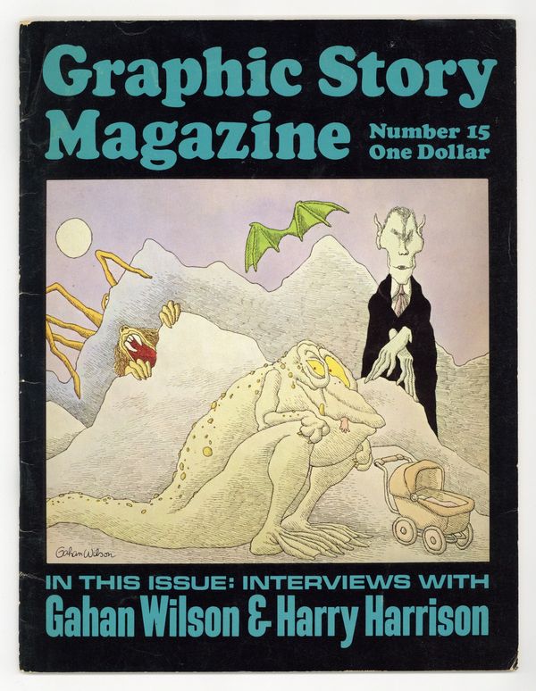 $25.0032 pages; black and white. Lengthy interviews with cartoonist Gahan Wilson and artist/science fiction writer Harry Harrison ("Stainless Steel Rat"). Wilson front cover. Harrison/Wally Wood back cover. Cover price $1.00.