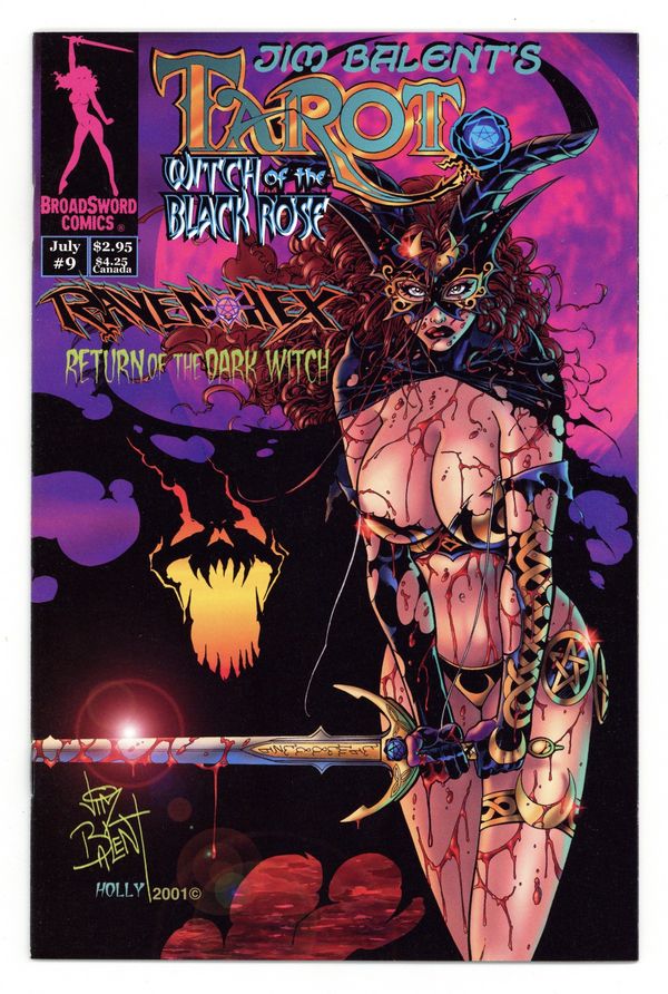 Published Jul 2001 by BroadSword.$15.00(W/A) Jim Balent. Raven Hex "Return of the Dark Witch" Part 3 of 3, Tarot is locked in a deadly battle with the Headless Horseman! Full color, 32 pages, slick paper stock. Mature readers. Cover price $2.95.