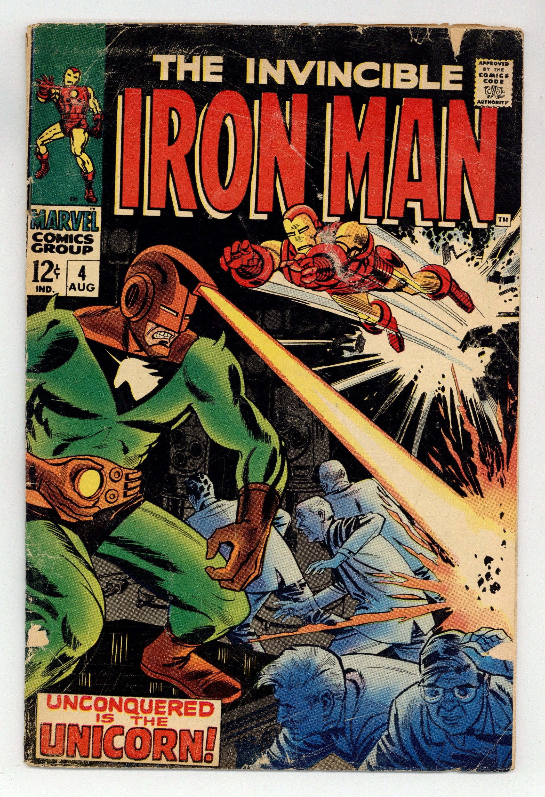 "Unconquered Is The Unicorn!" Script by Archie Goodwin. Art by Johnny Craig. Cover by Johnny Craig. Tony Stark attends a scientific conference at the Alpine Lodge when out of nowhere the Unicorn busts into the nationally televised meeting! While the Unicorn is making his demands to the TV audience, Tony finds his briefcase and changes into Iron Man! Can Shell-head win the slugfest against the powerful Unicorn? (Notes: The letters page includes a letter from comics historian Peter Sanderson. This issue also contains a full page ad for Silver Surfer issue 1 ? 1st series.) 32 pages Cover price $0.12.