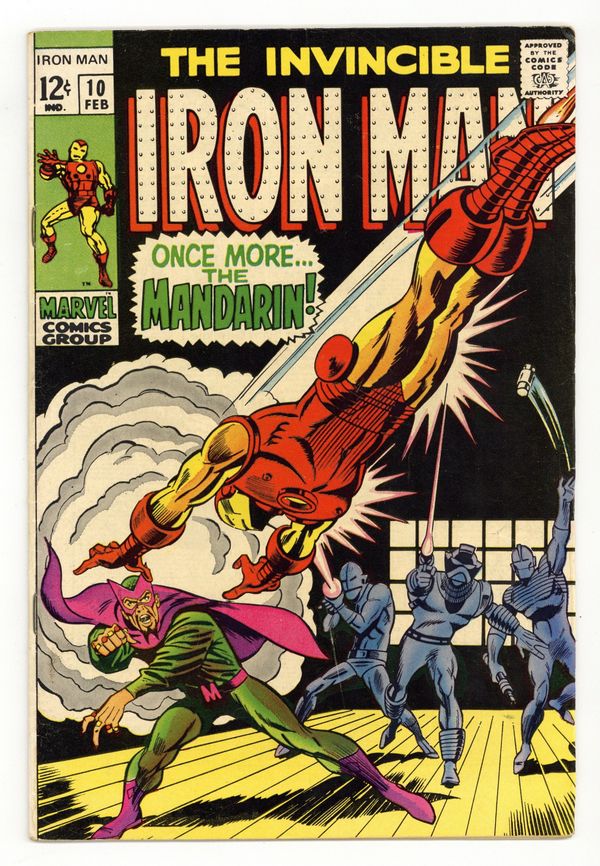 The Mandarin guests in "Once More...the Mandarin!" Part 2 of 3. Script by Archie Goodwin. Pencils by George Tuska. Inks by Johnny Craig. Cover by George Tuska. The Mandarin has discovered that Tony Stark is Iron Man! And now Shell-head's old foe is planning to ruin Stark Industries by linking Tony to communist activity, and thus forcing the U.S. government to cancel Stark Industries' military contracts. How is the golden avenger going to clear his name and then defeat the villain with the ten rings? Cameo appearance by Nick Fury. (Note: The letters page includes a letter from comics writer and artist Walt Simonson.) 32 pages Cover price $0.12.