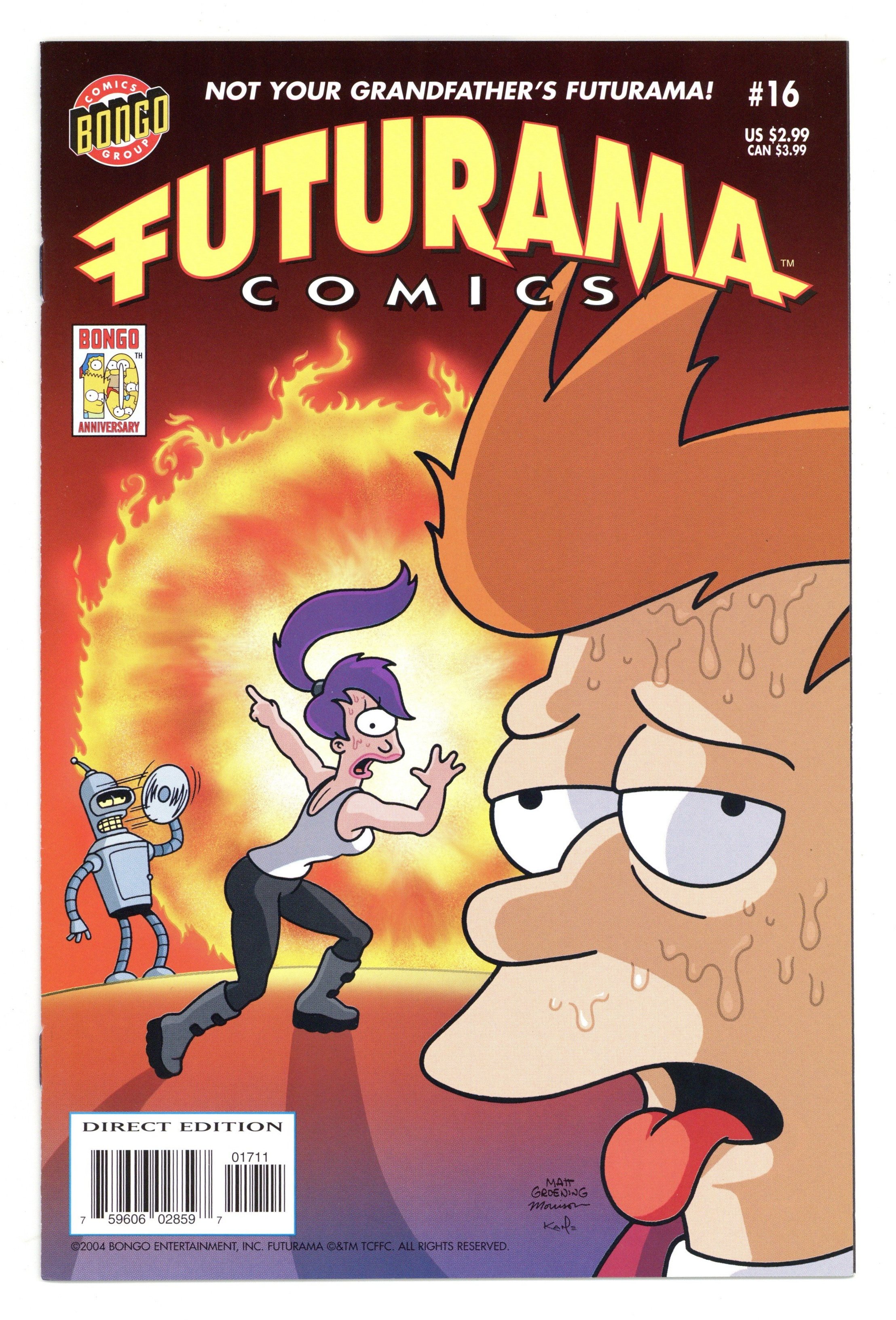 $18.00by Boothby & Lloyd When Professor Farnsworth's clone Cubert shows a slight dip in his studies and a decrease in his IQ, he is sent across the galaxy in search of a school that will save his brain from atrophying. But Cubert's not the only one sent off to boarding school. Fry, Leela, and Bender find themselves trapped in the Blackboard Jungle as well. Join us for the prologue to "The Time Bender Trilogy" ? a special Futurama story arc ? in four parts! Blast off with a comic made "Express"ly for you in January! FC, 32pg $2.99 Cover price $2.99.
