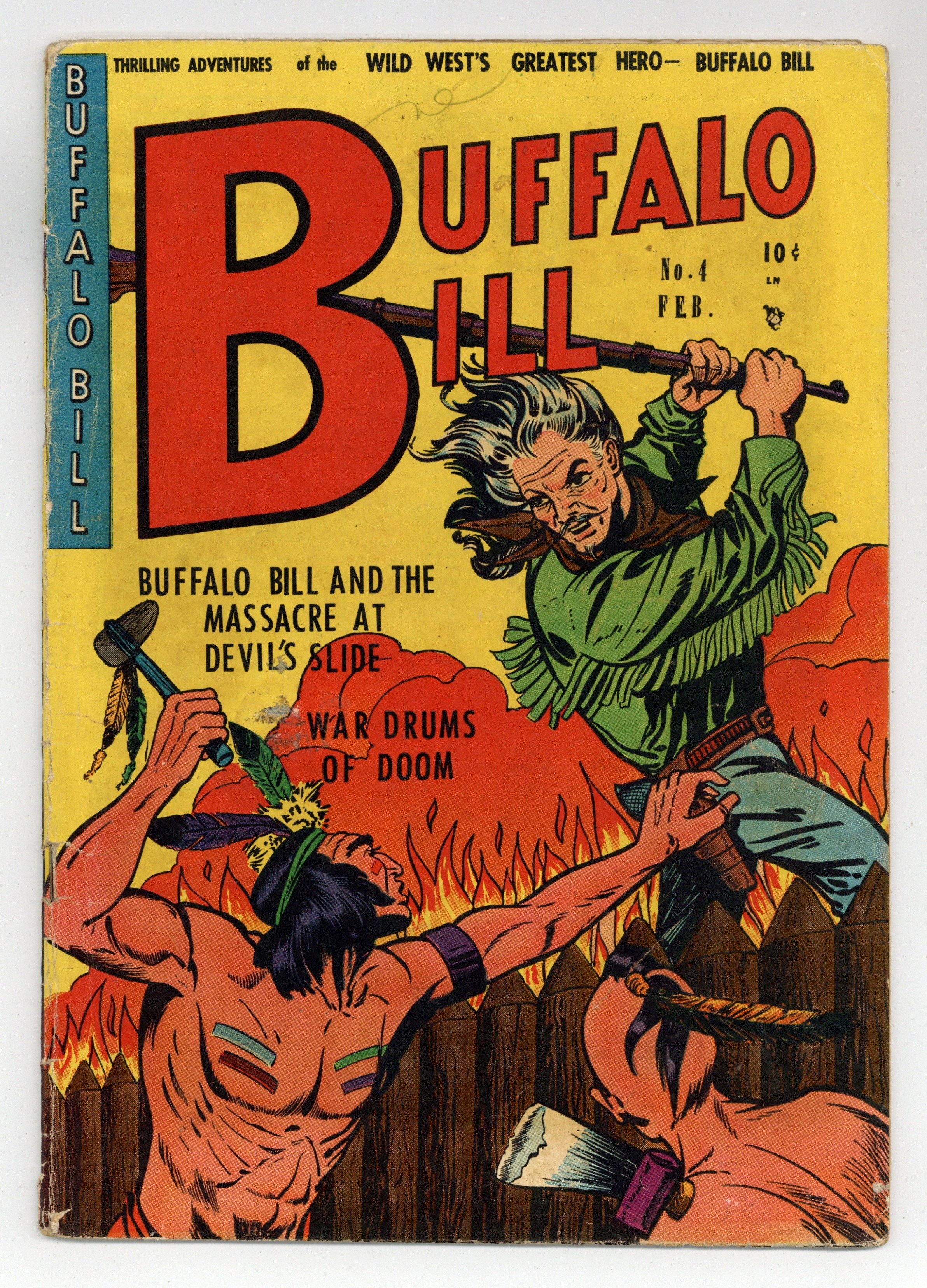 $23.00Stories and art by John Sink, Manny Stallman, Richard Case and Stephen Kirkel. Western adventure from Youthful Magazines. Kiowa chieftain Grey Wolf and his wolf Lobo race to warn his tribe of an impending Comanche attack. Buffalo Bill is enlisted to provide security for railroad workers in hostile territory. Fugitive outlaw Wild Bill Doolin accidentally winds up the sheriff of a lawless Western town. The War Drums of Doom; Grey Wolf: The Call of the Wild; Chief Crazy Horse; Massacre at the Devil's Slide; Wild Bill Doolin: A Date With Death. 32 pages, Full Color. Cover price $0.10.