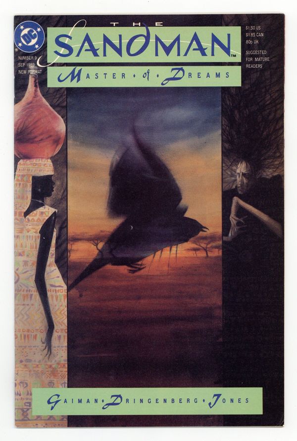A mystery that began 10,000 years ago has its impact on the present as the secret of the Sandman's love life is explored. Written by Neil Gaiman, with art by Mike Dringenberg and Malcolm Jones III. Painted cover by Dave McKean. Suggested for Mature Readers. New Format. Cover price $1.50.