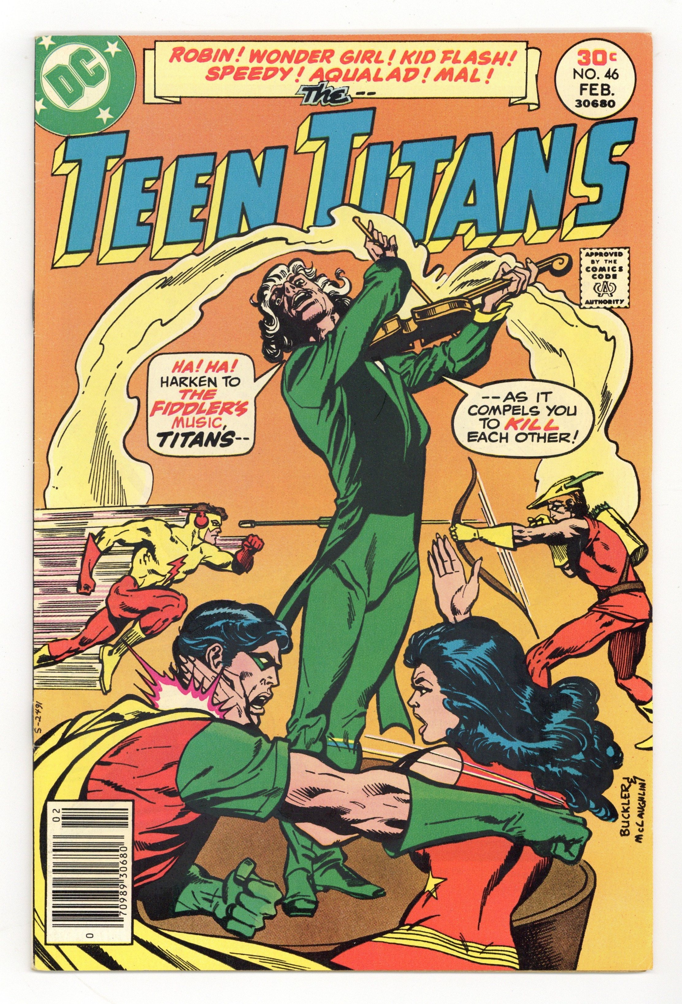 Written by Bob Rozakis. Art by Irv Novick and Joe Giella. Cover by Rich Buckler and Frank McLaughlin. The Fiddler travels to Earth 1 to get away from the Injustice Society. He decides to rob a music concert but is stopped by the Titans. Hostess ad with Wonder Woman, art by Curt Swan and Vince Colletta. Index of Titans stories. 36 Pages, Full Color. Cover price $0.30.