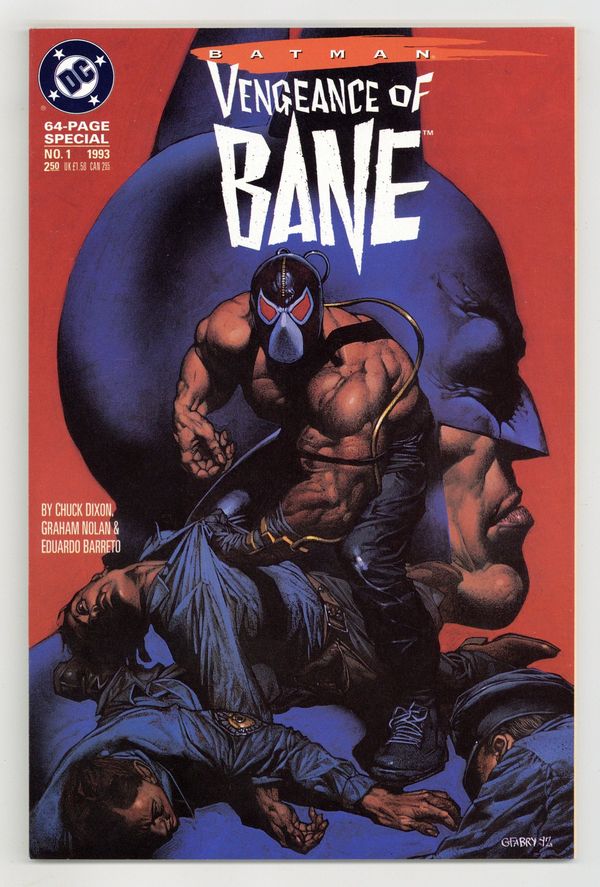 1st printing - In Batman Sword of Azrael (1992) #1-4, a major new hero was introduced to the Batman mythos. Now, another character is added to the Batman family. Only this time, it's a villain. Bane is the sole survivor of the Venom experiments (first revealed in Batman Legends of the Dark Knight (1989-2007) #16-20), an attempt to create drug-enhanced killing machines. As a result of these tests, Bane has spent a lifetime as the toughest inmate in the worst prison on the South American island of Santa Prisca where he acquired his berserk strength, a savage, calculating intellect, and an unparalleled megalomania. He ultimately sets his sights on Gotham City, and goes gunning for the Dark Knight. Written by Chuck Dixon, with art by Graham Nolan and Eduardo Barreto. Painted cover by Glenn Fabry. 68 pages. Cover price $2.50.