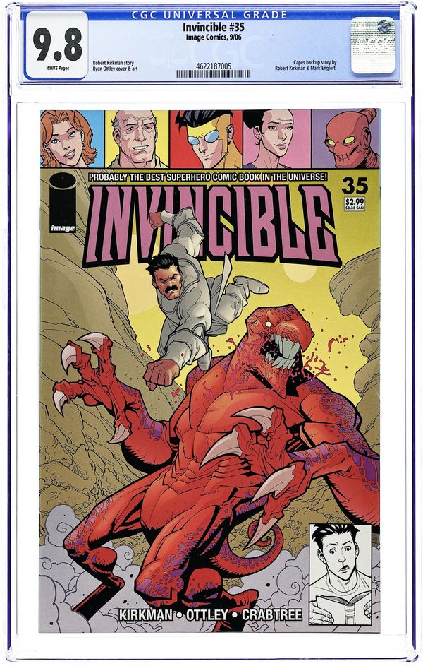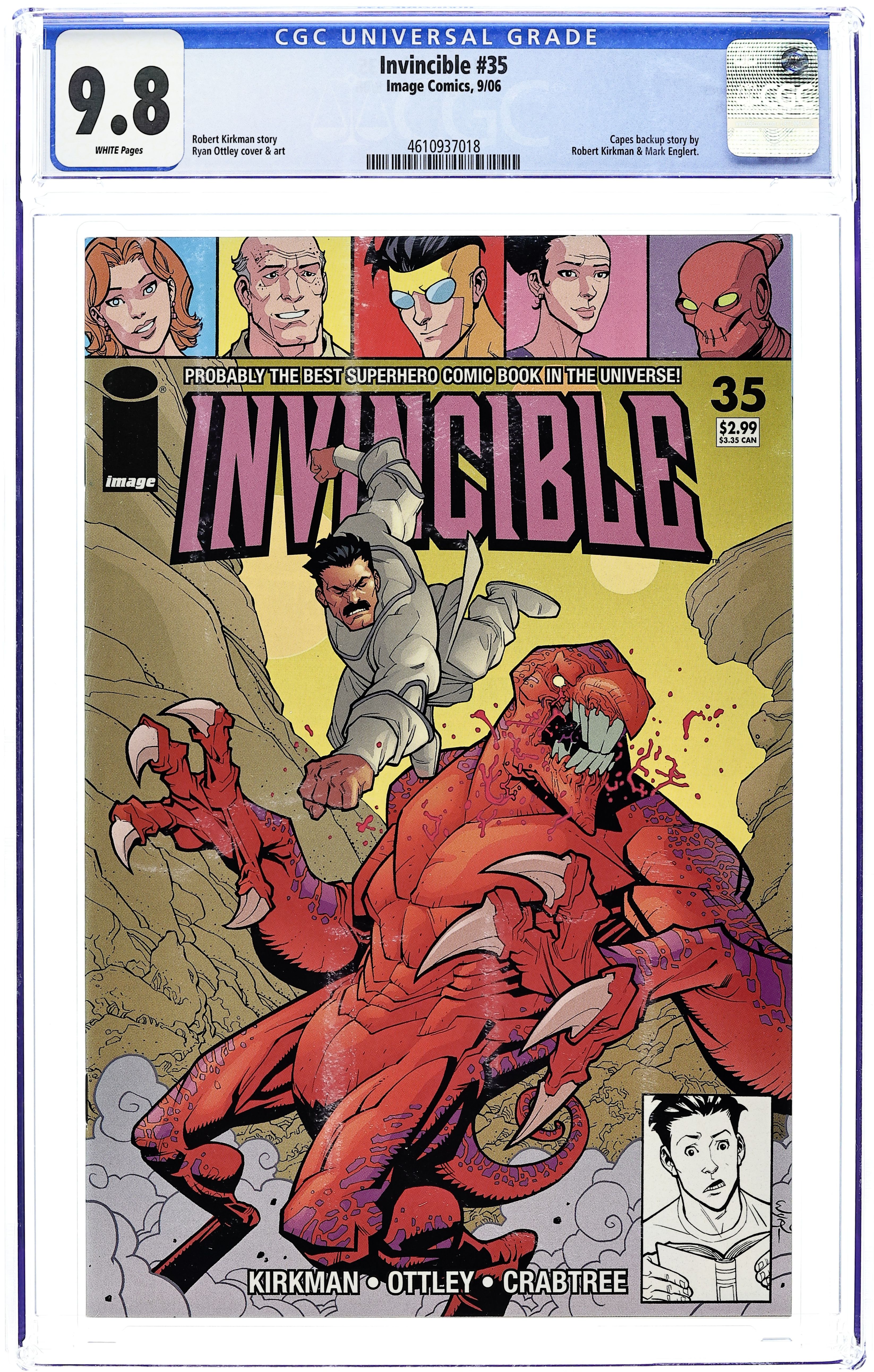 Story by ROBERT KIRKMAN. Art & cover by RYAN OTTLEY & BILL CRABTREE. What are Nolan's books and why did he tell Mark it was so important to read them? What stories do they tell, and how are they tied into the current events of his life? Secrets are revealed, and the stage is set for the next chapter in Invincible's life -- and it's all leading up to the monumental issue 50. ? 32 pg ? FC ? . Cover price $2.99.