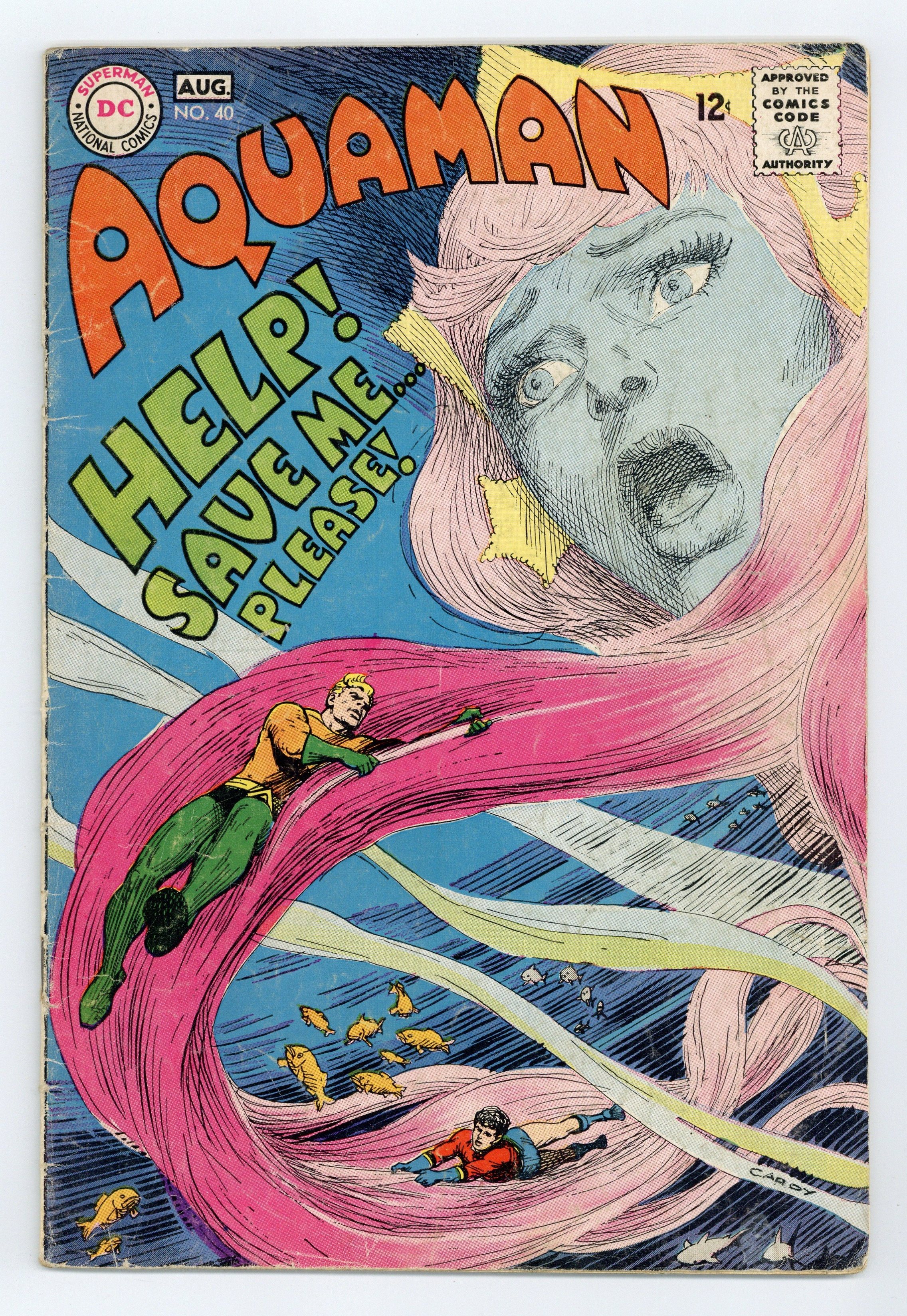 $31.50Cover art by Nick Cardy. Sorcerers of the Sea starring Aquaman, Aqualad, Mera, Aquagirl, Aquababy, Vulko, and The Sea Sorcerers, script by Steve Skeates, art by Jim Aparo (1st for DC); Mera kidnapped, multi-issue quest for Mera begins; story continues in Aquaman #41. Cap's Hobby Hints activity half-page by Henry Boltinoff. 36 pgs. $0.12. Cover price $0.12.