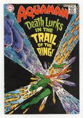 $25.50Cover art by Nick Cardy. The Trail of the Ring! starring Aquaman, Aqualad, Aquagirl, Aquababy, Mera (flashback), Vulko, Harkran, and Zancol, script by Steve Skeates, art by Jim Aparo; Aquaman continues his quest to find the missing Mera. Letter from comics writer Tony Isabella. House ad for Superman's Girl Friend Lois Lane #86 (October 1968), written as a wedding invitation, art by Neal Adams. House ad for non-specific next issue of House of Mystery. 36 pgs. $0.12. Cover price $0.12.