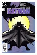 First Printing. Direct Edition. Batman Year One, Chapter Two: "War Is Declared". Part 2 of 4, continued from the previous issue. Story continues next issue. Bruce Wayne dons the cape and cowl for the first time to take the fight to the criminal element, while James Gordon stirs up trouble within his own department. Script by Frank Miller, art by David Mazzucchelli. Harvey Dent appears as Assistant District Attorney. Mazzucchelli cover. 1st printing. NOTE: Most issues from 397-432 were reprinted in 1989 and sold in multipacks. These 2nd and 3rd prints have back cover ads dated 1989. 36 Pages, Full Color. Cover price $0.75.