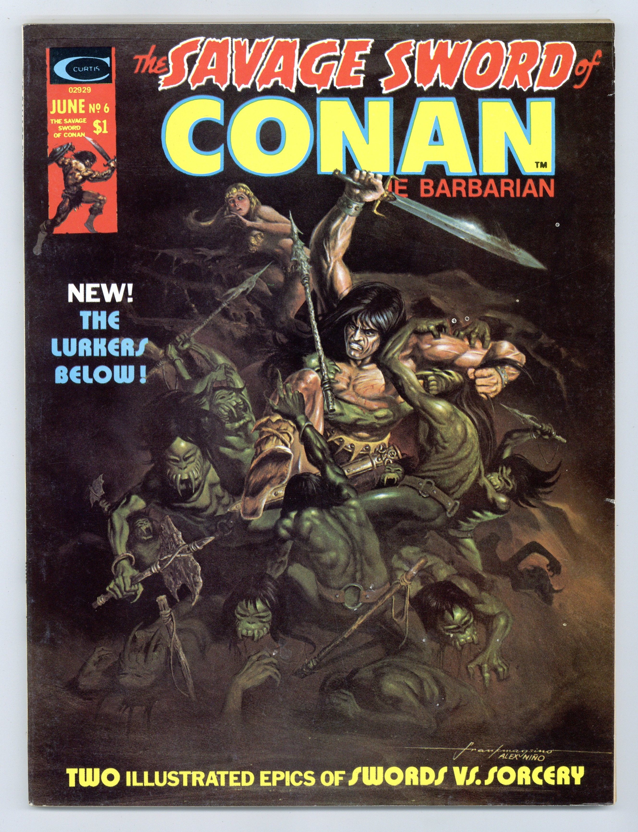 Conan stars in "The Sleeper Beneath the Sands." Script by Roy Thomas, art by Sonny Trinidad. This is a sequel to last issue's "A Witch Shall Be Born." Also in this issue: "People of the Dark." Script by Thomas, art by Alex Nino. Adapted from the story by Robert E. Howard. "Gods of the Hyborian Age" (part 1) article by Robert L. Yaple with illustrations by Nino and Duffy Vohland (?). "Can Anything Good Come Out of Cimmeria?" article by Lin Carter with a full-page illustration by Nino. Don Newton frontispiece. Frank Magsino/Alex Nino cover. Cover price $1.00.