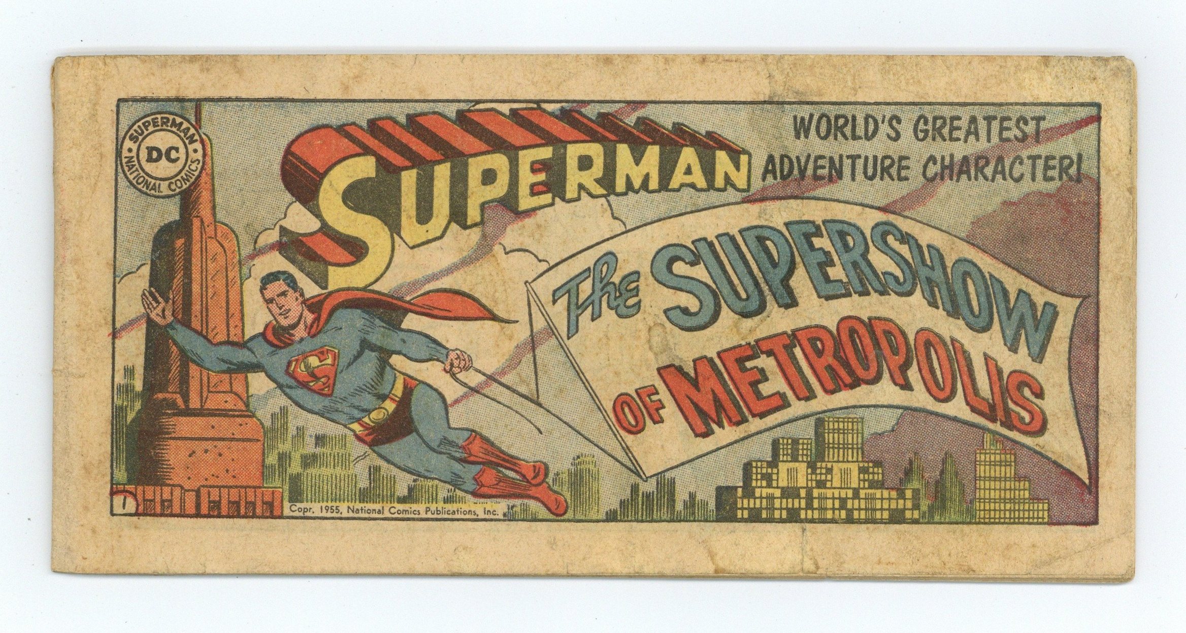 Issue #1B. Superman The Super Show of Metropolis, a 1955 Kellogg's Sugar Smacks giveaway. 32-page full-color promotional comic, 6-7/8 x 3-1/8, newsprint, no cover price. Curt Swan art.