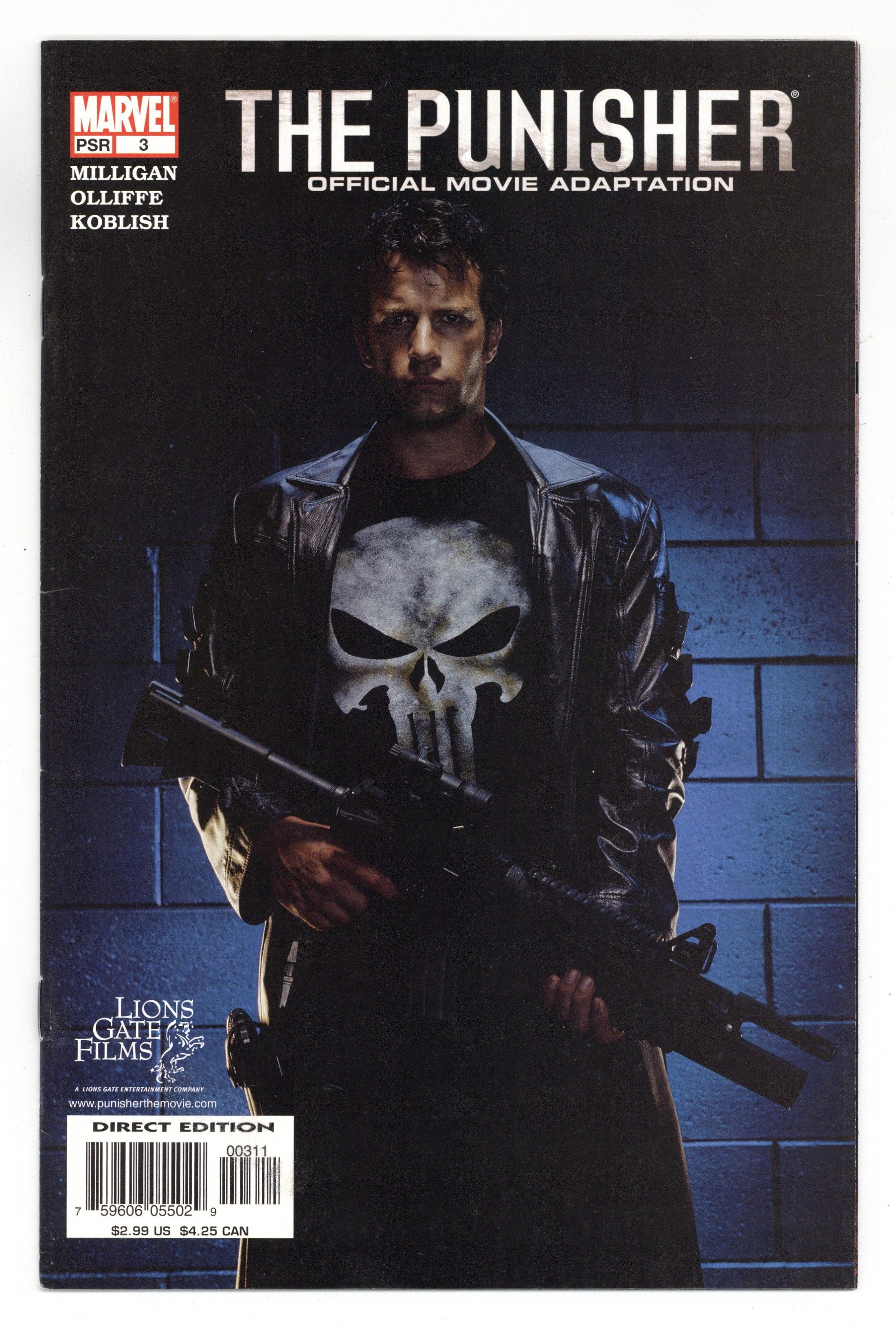 Written by PETER MILLIGAN Pencils by PAT OLLIFFE MOVIE PHOTO COVER Marvel presents the official comic book adaptation of their latest big-screen blockbuster starring John Travolta, Rebecca Romijn-Stamos and Thomas Jane as Frank Castle, the Punisher! 32 PGS.(each)/ALL AGES...$2.99 (each) Issue #1 UPC: 5960605502-00111; #2: 5960605502-00211; #3: 5960605502-00311 ยท THREE ISSUES! Cover price $2.99.