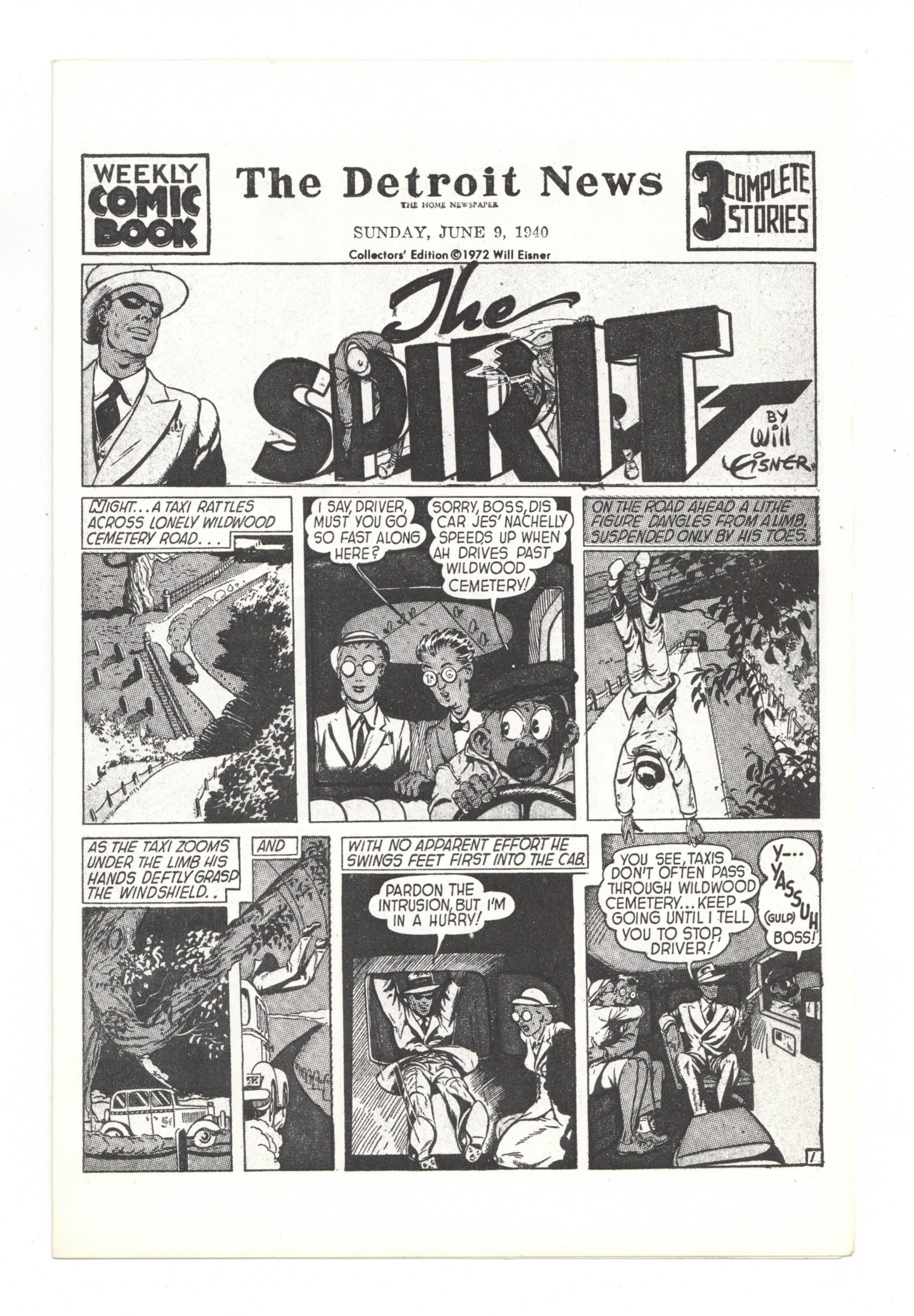 $3.70Limited Edition Reprint of the Spirit Weekly Newspaper Comic reprint dated dated June 9, 1940. Reprints the 2nd issue of Spirit. Will Eisner wrote individual commentary (on the back page) for most every issue in this reprint series. 6-1/4" x 9 3/8" inches, 8 pages, b&w.