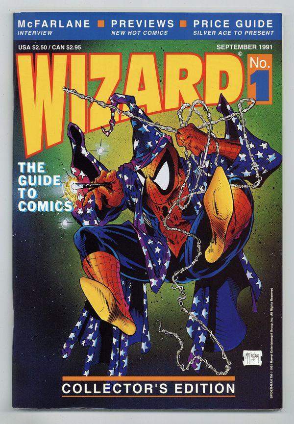 $65.00Direct Edition. Todd McFarlane interview on Spider-Man; a short history of Spider-Man; brief article on digital coloring; article on horror comics, past and present; Bill Campbell discusses the Rocketeer movie; article on comic book distributors. NO centerfold poster included. MAY or MAY NOT include a Survey/subscription insert. Cover price $2.50.