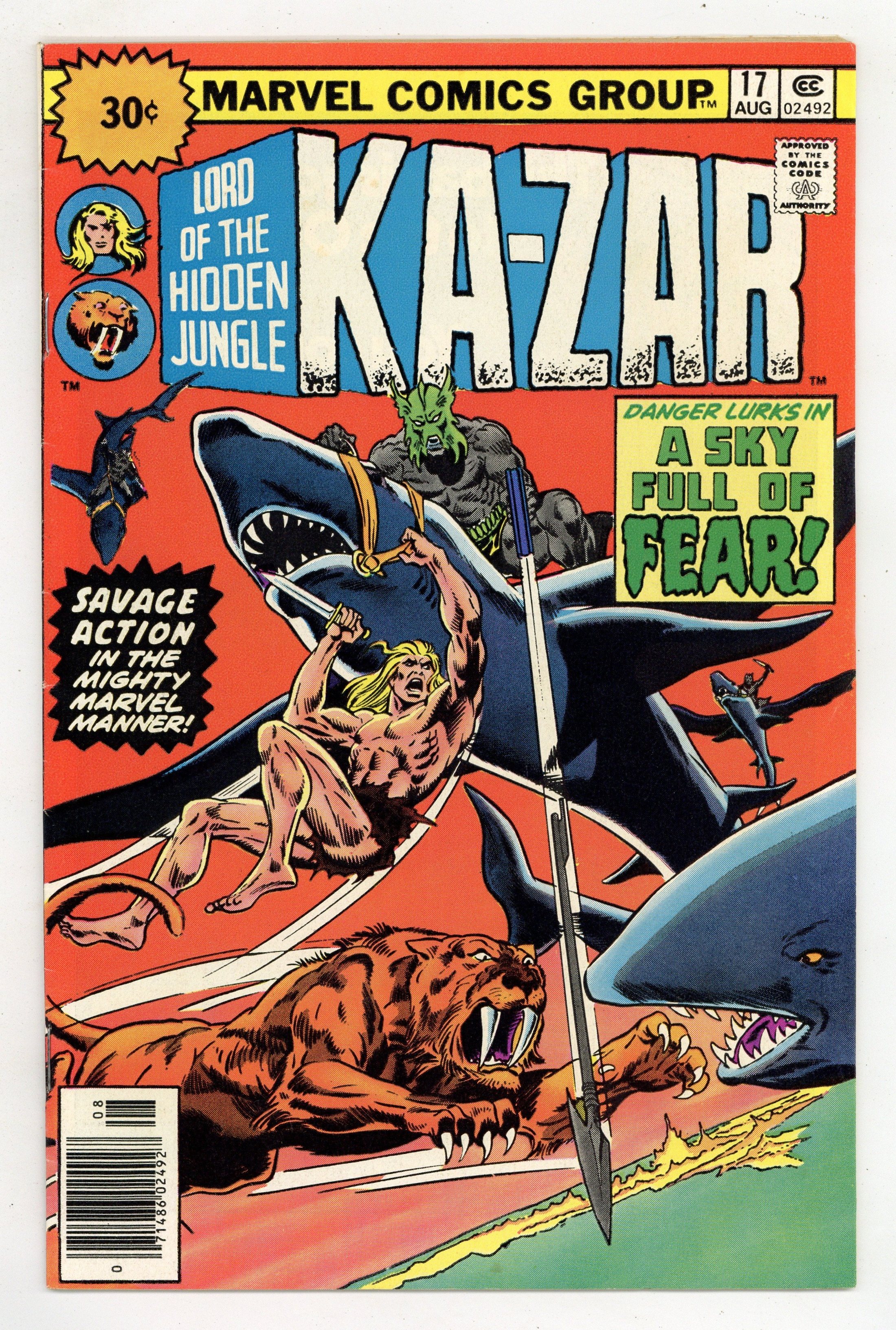 Tags: 30 Cent Variant$29.0030 cent cover price variant with starburst price style. "A Shark on the Wind!" Cover by Rich Buckler. Script by Doug Moench, pencils by Val Mayerik. Marvel Value Stamp. Cover price $0.30.